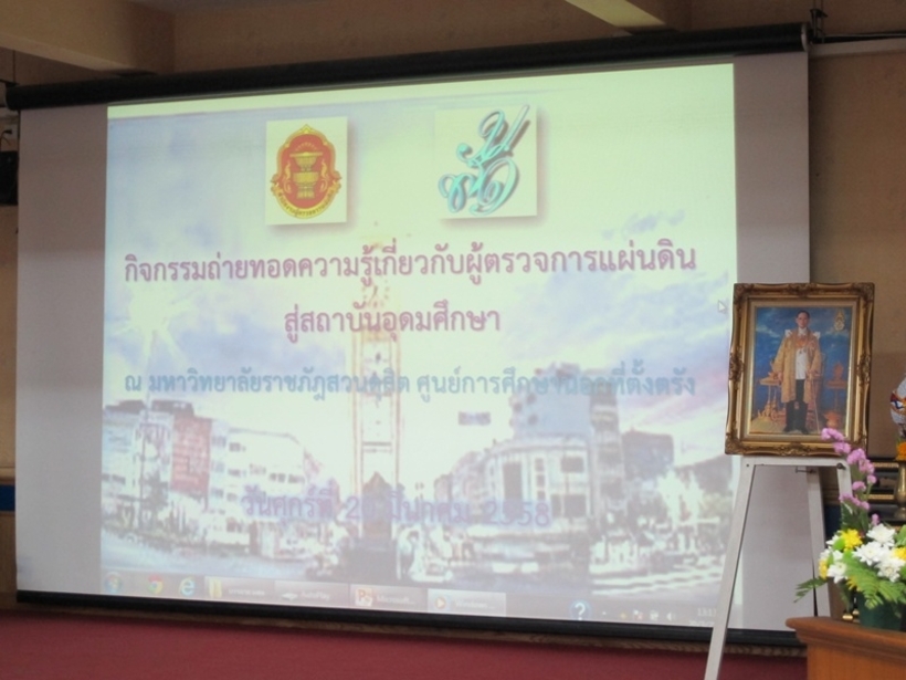 ศูนย์การศึกษานอกที่ตั้ง ตรัง มหาวิทยาลัยราชภัฏสวนดุสิต ได้รับเกียรติจาก สำนักงานผู้ตรวจการแผ่นดิน จัดกิจกรรม ถ่ายทอดองค์ความรู้เกี่ยวกับผู้ตรวจการแผ่นดินสู่สถาบันอุดมศึกษา ให้แก่นักศึกษาสาขาวิชารัฐประศาสนศาสตร์ และคณะบุคลากร โดยมีการให้ความรู้เกี่ยวกับบทบาทอำนาจหน้าที่ของผู้ตรวจการแผ่นดิน เพื่อที่จะให้นักศึกษาและประชาชนทั่วไปได้ทราบเกี่ยวกับการดำเนินงานของ สำนักผู้ตรวจการแผ่นดิน มีความรู้ความเข้าใจว่าเรามีส่วนเกี่ยวข้องอย่างไร และสามารถนำมาปรับใช้ในชีวิตประจำวันได้อย่างไร การจัดกิจกรรมในครั้งนี้ ทำให้นักศึกษาได้รับความรู้เป็นอย่างมาก เมื่อวันที่ 20 มีนาคม 2558 ณ ห้องประชุมดุสิตตรัง