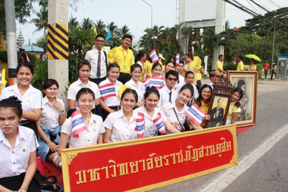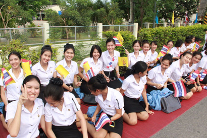 ผู้บริหาร อาจารย์ เจ้าหน้าที่และนักศึกษา ศูนย์การศึกษานอกที่ตั้ง หัวหิน เฝ้ารับเสด็จพระบาทสมเด็จพระเจ้าอยู่หัว และสมเด็จพระนางเจ้าฯพระบรมราชินีนาถ เพื่อ ไปประทับ ณ พระตำหนักเปี่ยมสุข วังไกลกังวล อำเภอหัวหิน จังหวัดประจวบคีรีขันธ์ เมื่อวันที่ 10 พฤษภาคม 2558 เวลา 15.30 น. ณ บริเวณด้านหน้าศูนย์การศึกษานอกที่ตั้ง หัวหิน