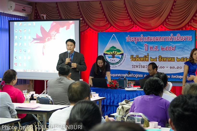 เมื่อวันที่ 24 สิงหาคม 2558 นายวรเวชช์ อ่อนน้อม รักษาการผู้อำนวยการมหาวิทยาลัยสวนดุสิต ศูนย์การศึกษานอกที่ตั้ง สุพรรณบุรี และบุคลากรมหาวิทยาลัยสวนดุสิต ศูนย์ฯสุพรรณบุรี เข้าร่วมประชุมนำเสนอผลการดำเนินงาน ปี พ.ศ. 2558 ที่ได้ทำร่วมกับอำเภออู่ทอง ณ เทศบาลตำบลเท้าอู่ทอง อำเภออู่ทอง จังหวัดสุพรรณบุรี