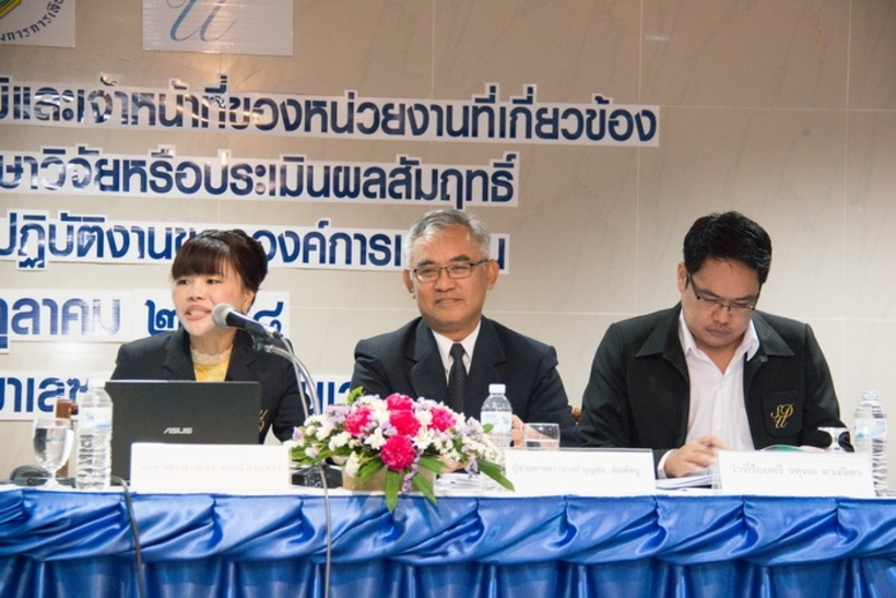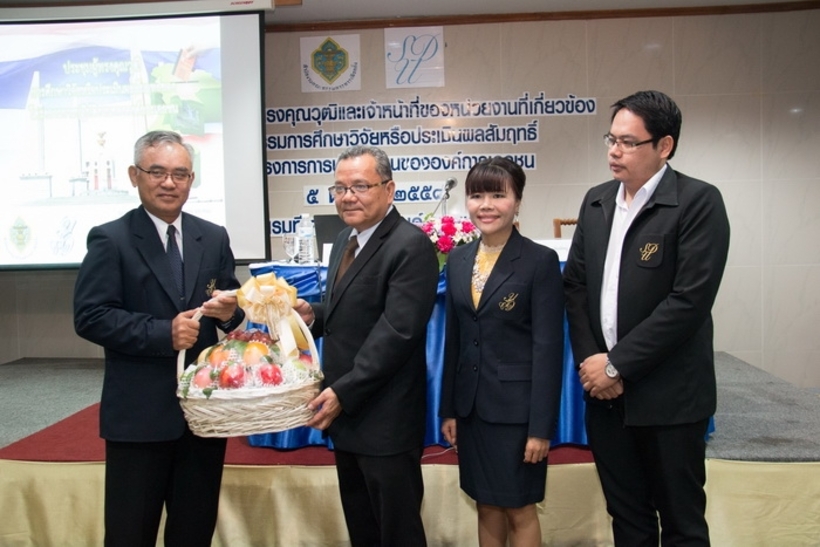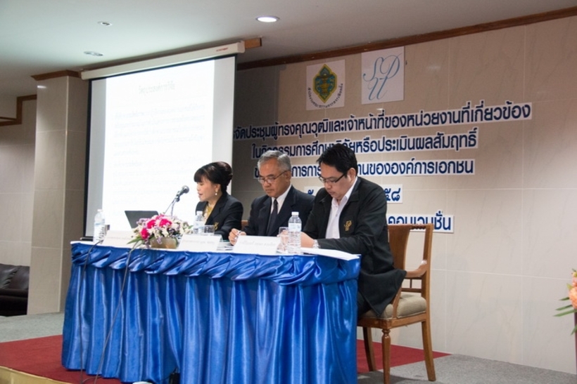 คณะผู้วิจัยจากมหาวิทยาลัยราชภัฏสวนดุสิต นำโดย รศ.ดร.พรรณี  สวนเพลง อาจารย์ประจำคณะวิทยาศาสตร์และเทคโนโลยี ผศ.บุญสม  พิมพ์หนู  และอ.จตุพล  ดวงจิต อาจารย์ประจำคณะมนุษยศาสตร์และสังคมศาสตร์ และคณะ จัดประชุมผู้ทรงคุณวุฒิและเจ้าหน้าที่ของหน่วยงานที่เกี่ยวข้อง ในกิจกรรมการศึกษาวิจัยหรือประเมินผลสัมฤทธิ์ของโครงการการปฏิบัติงานขององค์การเอกชน และแถลงผลการวิจัย เรื่อง “การศึกษาวิจัยหรือประเมินผลสัมฤทธิ์ของโครงการการปฏิบัติงานขององค์การเอกชน” พร้อมรับฟังข้อคิดเห็นเสนอแนะจากผู้เข้าร่วมประชุม เมื่อวันที 6 ตุลาคม 2558  ณ โรงแรมทีเค พาเลส กรุงเทพฯ (ภาพ/ข่าว:พศิน)