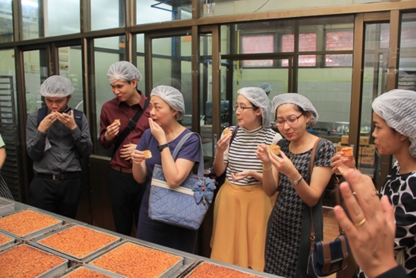 นิสิตระดับบัณฑิตศึกษา หลักสูตรวิทยาศาสตรมหาบัณฑิต และวิทยาศาสตรดุษฎีบัณฑิต สาขาการวิจัยและการจัดการด้านสุขภาพ ภาควิชาเวชศาสตร์ป้องกันและสังคม คณะแพทยศาสตร์ จุฬาลงกรณ์มหาวิทยาลัย ปีการศึกษา 2558 ศึกษาดูงานเกี่ยวกับพฤติกรรมการบริโภคอาหารสุขภาพภายในมหาวิทยาลัย ณ โฮมเบเกอรี่ มหาวิทยาลัยสวนดุสิต เมื่อวันที่ 20 ตุลาคม 2558 (ภาพ/ข่าว : ณรัชพงศ์ ทิพย์นพนนท์)