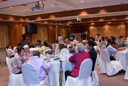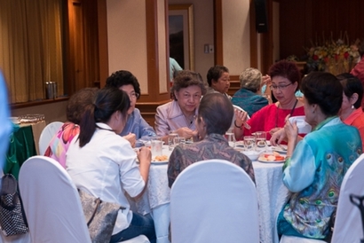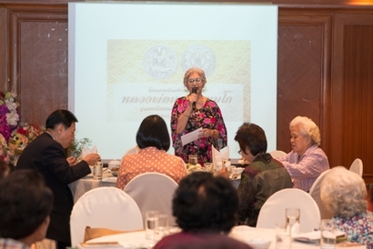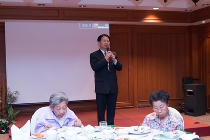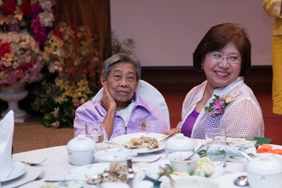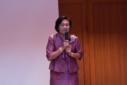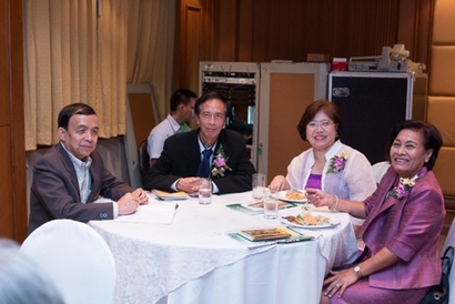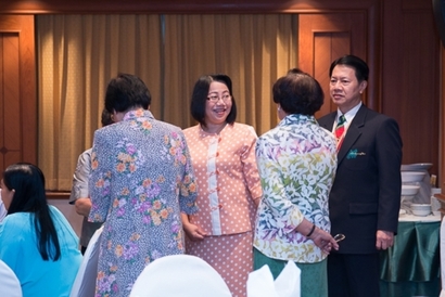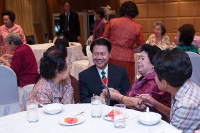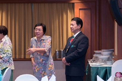 ผศ.ดร.พิทักษ์ จันทร์เจริญ รักษาการอธิการบดีมหาวิทยาลัยสวนดุสิต กล่าวต้อนรับและทักทายสมาชิกชมรมกล้วยไม้สวนดุสิต ซึ่งเป็นผู้เกษียณอายุราชการ ของมหาวิทยาลัยสวนดุสิต ในการพบปะพูดคุย เลี้ยงสังสรรค์ ณ ห้องกุมาริกา โรงแรมสวนดุสิต เพลส เมื่อวันที่ 29 ตุลาคม 2558 (ภาพ/ข่าว: พศิน)