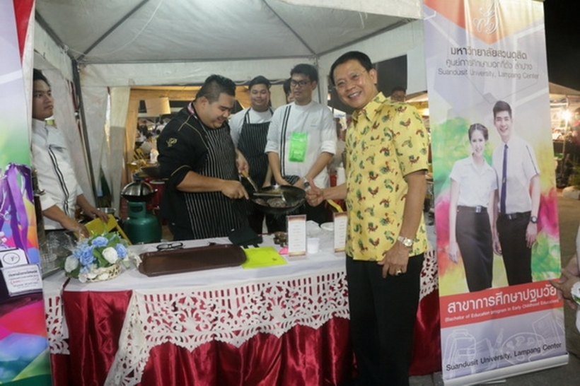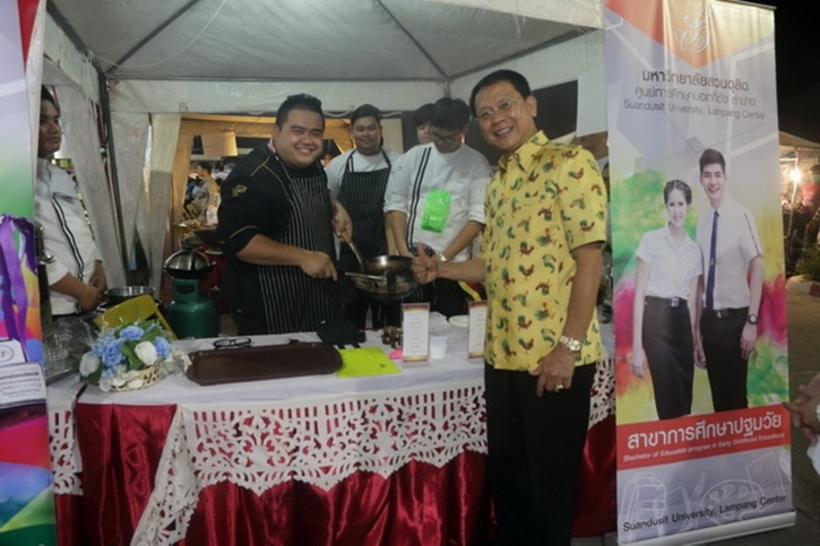 เมื่อวันที่ 11- 14 มี.ค. 2559 คณาจารย์และนักศึกษาสาขาเทคโนโลยีการประกอบอาหารและการบริการ มหาวิทยาลัยสวนดุสิต ศูนย์ฯลำปางร่วมจัดบูธประชาสัมพันธ์ พร้อมทั้งมีการประกอบอาหารเมนูพิเศษ เช่น เนื้อนกกระจอกเทศผัดฉ่า เนื้อโคขุน-เนื้อกวางผัดพริกไทยดำ และเมนูอาหารว่างขนมไทยชาววังตามแบบฉบับของสวนดุสิต เช่น ขนมโลเล ขนมถั่วแปป และสาคูไส้หมู โดยได้รับเกียรติจาก นายสามารถ ลอยฟ้า ท่านผู้ว่าราชการจังหวัดลำปางเข้าเยี่ยมชมบูธ พร้อมทั้งได้ชิมอาหารดังกล่าว