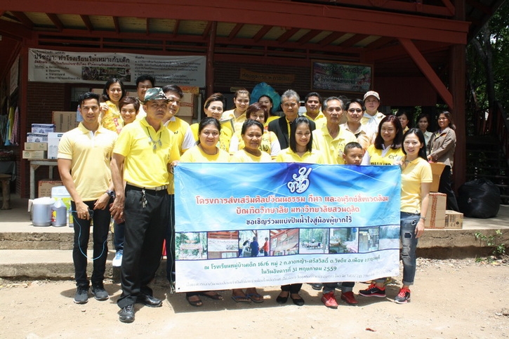 เมื่อวันอังคารที่31 พฤษภาคม 2559 เวลา.09.00 – 13.00 น, บัณฑิตวิทยาลัย มหาวิทยาลัยสวนดุสิต นำโดยคณบดี รศ. ดร.ประกฤติ พูลพัฒน์ พร้อมด้วยคณาจารย์และเจ้าหน้าที่ ได้เดินทางไปยังมูลนิธิเด็ก โรงเรียนหมู่บ้านเด็ก แบ่งปันน้ำใจมอบสิ่งของจำเป็น และเลี้ยงอาหารกลางวัน ตำบลลาดหญ้า อำเภอเมือง จังหวัดกาญจนบุรี