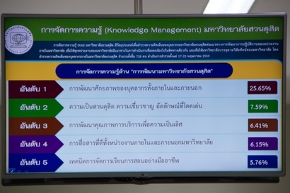 ผศ.ดร.พิทักษ์ จันทร์เจริญ รองอธิการบดีฝ่ายบริหาร มหาวิทยาลัยสวนดุสิต เป็นประธานการประชุมการจัดการความรู้ (Knowledge Managerment – KM) ครั้งที่ 2(2)/2559 โดยมีวาระสำคัญดังนี้ แนวปฏิบัติในการจัดทำโครงการการจัดการความรู้ (Knowledge Managerment – KM) และผลการสำรวจความต้องการการจัดการความรู้ (Knowledge Managerment – KM) มหาวิทยาลัยสวนดุสิต ฯลฯ เมื่อวันที่ 8 มิถุนายน 2559 ณ อาคารสำนักงานมหาวิทยาลัย (ภาพ/ข่าว:พศิน)