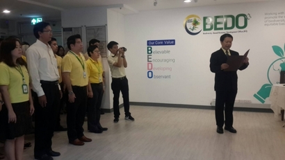 ผศ.ดร.พิทักษ์ จันทร์เจริญ รองอธิการบดีฝ่ายบริหาร มหาวิทยาลัยสวนดุสิต ในฐานะประธานกรรมการบริหารสำนักงานพัฒนาเศรษฐกิจจากฐานชีวภาพ (องค์การมหาชน) พร้อมด้วยเจ้าหน้าที่และพนักงาน สำนักงานพัฒนาเศรษฐกิจจากฐานชีวภาพ (องค์การมหาชน) ถวายพระพรชัยมงคลเนื่องในโอกาสวันคล้ายวันพระราชสมภพ 64 พรรษา สมเด็จพระบรมโอรสาธิราช เจ้าฟ้ามหาวชิราลงกรณ สยามมกุฎราชกุมาร ณ บริเวณหน้าห้องประชุมปีติพงษ์ สำนักงานพัฒนาเศรษฐกิจจากฐานชีวภาพ (องค์การมหาชน) เมื่อวันที่ 28 กรกฎาคม 2559