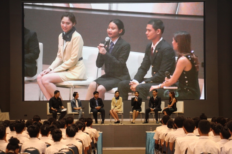 มหาวิทยาลัยสวนดุสิต จัดโครงการปฐมนิเทศนักศึกษาใหม่ ประจำปีการศึกษา 2559 ให้แก่นักศึกษาใหม่ โรงเรียนการท่องเที่ยวและการบริการ โดยได้รับเกียรติจาก ดร.สุวมาลย์ ม่วงประเสริฐ รองอธิการบดีฝ่ายวิชาการ กล่าวต้อนรับและให้โอวาทแก่นักศึกษา พร้อมทั้ง บรรยายในหัวข้อ “เรียนให้จบ หรือเรียนให้รู้” อาจารย์ ดร.จิตต์วิมล คล้ายสุบรรณ ผู้อำนวยการสำนักส่งเสริมวิชาการและงานทะเบียน “แนะนำการเรียนการสอนของมหาวิทยาลัย” ดร.ธนากร ปักษา รองผู้อำนวยการกองพัฒนานักศึกษา บรรยายในหัวข้อ “กิจกรรมนอกชั้นเรียนกับการพัฒนานักศึกษา” อาจารย์ กมลกนก เกียรติศักดิ์ชัย คณบดีโรงเรียนการท่องเที่ยวและการบริการ กล่าวต้อนรับและแนะนำอาจารย์ผู้รับผิดชอบหลักสูตร และเสวนา “สวนดุสิตให้มากกว่าปริญญา” โดยศิษย์เก่าและศิษย์ปัจจุบัน โดยมีผู้บริหาร คณาจารย์ เจ้าหน้าที่ และนักศึกษารุ่นพี่เข้าร่วม ณ อาคารรักตะกนิษฐ ชั้น 2 มหาวิทยาลัยสวนดุสิต วันที่ 5 สิงหาคม 2559 (ภาพ/ข่าว: พิพัฒน์พล เพ็ญเกิด )