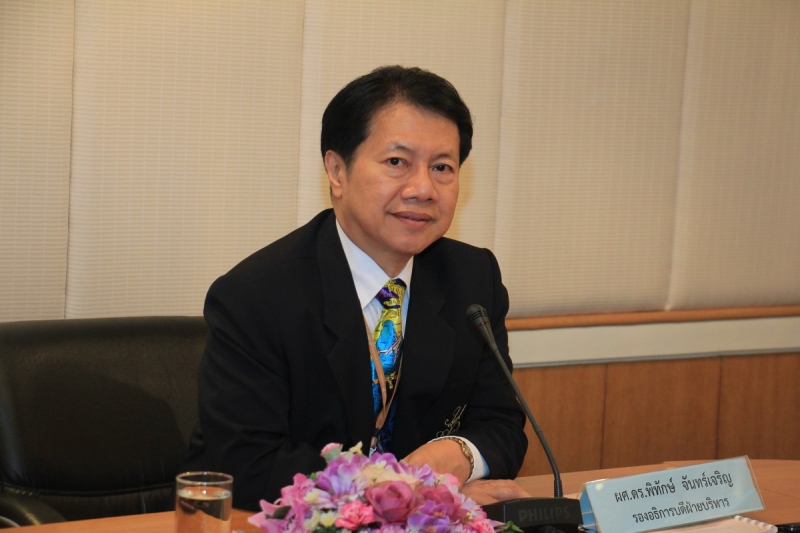 ผศ.ดร.พิทักษ์ จันทร์เจริญ รองอธิการบดีฝ่ายบริหาร มหาวิทยาลัยสวนดุสิต เป็นประธานการประชุมเพื่อพิจารณาความสามารถในการบริหารจัดการโครงการฯ ของผู้จัดการโครงการในกำกับสำนักกิจการพิเศษ ประจำปีงบประมาณ พ.ศ. 2559 มีวาระสำคัญดังนี้ ผู้จัดการโครงการฯ รายงานผลการดำเนินงานในปีงบประมาณ 2559 พร้อมตอบข้อซักถามและนำเสนอกลยุทธ์ในการดำเนินงาน ปีงบประมาณ 2560 คณะกรรมการบริหารสำนักกิจการพิเศษ สรุปผลการพิจารณาความสามารถในหารบริหารจัดการโครงการในกำกับสำนักกิจากรพิเศษ ประจำปีงบประมาณ พ.ศ. 2559 ณ ห้องประชุมลิขิต 2 โรงแรมสวนดุสิต เพลส วันที่ 26 กันยายน 2559 (ภาพ/ข่าว : พิพัฒน์พล เพ็ญเกิด )