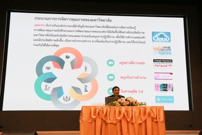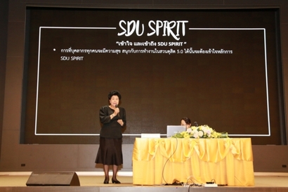 รศ.ดร.ศิโรจน์ ผลพันธิน อธิการบดีมหาวิทยาลัยสวนดุสิต มอบนโยบายทิศทางการดำเนินงานภายใต้แผนยุทธศาสตร์ใหม่ ในการประชุมบุคลากรมหาวิทยาลัยสวนดุสิต (สายสนับสนุน) “ อยู่อย่างมีความสุข สนุกกับการทำงานในสวนดุสิต5.0 ” พร้อมด้วย ผศ.ดร.พิทักษ์ จันทร์เจริญ รองอธิการบดีฝ่ายบริหาร มอบนโยบายเรื่อง “ ทิศทางการดำเนินงานภายใต้แผนยุทธศาสตร์ใหม่ สำหรับบุคลากรสายสนับสนุน” ดร.สุวมาลย์ ม่วงประเสริฐ รองอธิการบดีฝ่ายวิชาการ มอบนโยบายเรื่อง “ทิศทางการดำเนินงานภายใต้แผนยุทธศาสตร์ใหม่” รศ.พัชรี สวนแก้ว รองอธิการบดีฝ่ายกิจการนักศึกษา มอบนโยบายในหัวข้อ คุณ คือ “คนสำคัญ” ดร.วรานี เวสสุนทรเทพ รองอธิการบดีฝ่ายวิทยาเขตสุพรรณบุรี มอบนโยบายในเรื่อง “ความเชื่อมโยงที่ก่อให้เกิดสุข ในวิทยาเขตสุพรรณบุรี” ดร.พรชณิตว์ แก้วเนตร รองอธิการบดีฝ่ายกิจการต่างประเทศและลูกค้าสัมพันธ์ มอบนโยบายในเรื่อง B.A.S.E. : แค่เปลี่ยนแนวคิด ชีวิตก็ “อินเตอร์” ดร.สวงค์ บุญปลูก รองอธิการบดีฝ่ายเทคโนโลยีสารสนเทศ มอบนโยบายในเรื่อง “การจัดการเทคโนโลยีสารสนเทศให้สอดรับกับแนวทางพัฒนามหาวิทยาลัย” ผศ.ดร.ชนะศึก นิชานนท์ รองอธิการบดีฝ่ายวิจัยและพัฒนาการศึกษา มอบนโยบายในเรื่อง “Routine to SDU Revolution” และ รศ.ดร.สุขุม เฉลยทรัพย์ ประธานที่ปรึกษาอธิการบดี บรรยายพิเศษเรื่อง คนสวนดุสิต : “คิด” และ “ทำ” แบบบูรณาการ ณ อาคารรักตะกนิษฐ ชั้น 2 มหาวิทยาลัยสวนดุสิต เมื่อวันที่ 22 มีนาคม 2560 (ภาพ/ข่าว:พศิน)