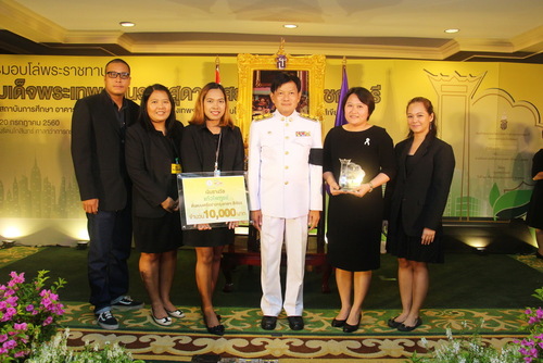 นางสาวพรธิดา เทพประสิทธิ์ ผู้อำนวยการศูนย์สิ่งแวดล้อม มหาวิทยาลัยสวนดุสิต พร้อมด้วยเจ้าหน้าที่ศูนย์สิ่งแวดล้อม  เข้ารับรางวัลโล่พระราชทาน “แก้วไพฑูรย์” สมเด็จพระเทพรัตนราชสุดาฯ สยามบรมราชกุมารี โครงการเครือข่ายกรุงเทพฯ สีเขียว (ระดับอุดมศึกษา)  จัดขึ้นเพื่อส่งเสริมการมีส่วนร่วมในการจัดการด้านสิ่งแวดล้อม และสร้างเครือข่ายความร่วมมือจากภาครัฐ ภาคเอกชน และภาคประชาชนในการช่วยกันรักษาสิ่งแวดล้อมในสังคมให้มีความมั้นคงและยั่งยืน ทั้งได้รับเกียรติจาก นายจักกพันธุ์  ผิวงาม รองผู้ว่าราชการกรุงเทพมหานคร เป็นประธานในพิธี  ณ ห้องรัตนโกสินทร์ ศาลาว่าการกรุงเทพมหานคร  วันที่ 20 กรกฎาคม 2560 (ภาพ/ข่าว:พิพัฒน์พล เพ็ญเกิด)