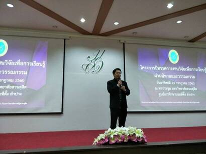 วันที่ 23 กรกฎาคม 2560 โครงการความร่วมมือทางวิชาการระหว่างกรมส่งเสริมการปกครองท้องถิ่นกับมหาวิทยาลัยราชภัฏสวนดุสิต (รมป.2) ศูนย์การศึกษานอกที่ตั้งลำปาง จัดนิทรรศการงานวิจัยเพื่อการเรียนรู้ผ่านนิทานและวรรณกรรม ของนักศึกษา รมป.2 โดยได้รับเกียรติจาก ผศ.ดร.พิทักษ์ จันทร์เจริญ รองอธิการฝ่ายบริหาร มหาวิทยาลัยสวนดุสิต ประธานกล่าวเปิดโครงการฯ พร้อมทั้งผู้บริหารประจำหลักสูตร ผศ.รัตนา งิ้วงาม, ผศ.อรุณี โคตรสมบัติ, ดร.กานดา ธีระทองคำ ดร.ศรีุสุดา จันทร์กุญชร ผู้อำนวยการศูนย์ฯลำปาง ดร.ขวัญนภา สุขคร และคณาจารย์เข้าร่วมกิจกรรมในครั้งนี้ ณ หอประชุม มหาวิทยาลัยสวนดุสิต ศูนย์การศึกษานอกที่ตั้ง ลำปาง