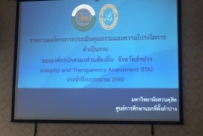 วันที่ 7 ธันวาคม 2560 เวลา 09.00 น. ทีมคณะผู้วิจัย นำโดย ดร.ขวัญนภา สุขคร ผู้อำนวยการศูนย์ฯลำปาง ตรวจรับงานการประเมินคุณธรรมและความโปร่งใส การดำเนินงานขององค์กรปกครองส่วนท้องถิ่น จังหวัดลำปาง Integrity and Transparency Assessment (ITA) งวดที่ 3 ประจำปีงบประมาณ 2560 ณ ศาลากลาง จ.ลำปาง