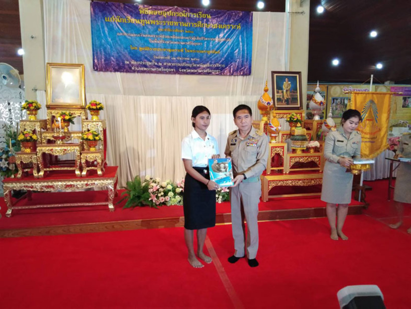 รักษาการแทนผู้อำนวยการสำนักงานวิทยาเขตสุพรรณบุรี เข้าร่วมเป็นเกียรติในพิธีมอบอุปกรณ์การเรียนแก่นักเรียนทุนพระราชทานเพื่อการศึกษาสงเคราะห์ ประจำปีการศึกษา2560