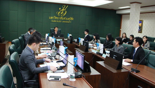 ผู้ช่วยศาสตราจารย์ ดร.พิทักษ์ จันทร์เจริญ รองอธิการบดีฝ่ายบริหาร มหาวิทยาลัยสวนดุสิต เป็นประธานการประชุมคณะกรรมการบริหาร สำนักกิจการพิเศษ มหาวิทยาลัยสวนดุสิต ครั้งที่ 3(12)/2561 มีวาระคำคัญเรื่อง (ร่าง) กำหนดการวันขึ้นปีใหม่ พุทธศักราช 2561 (ร่าง) กำหนดการประชุมบุคลากรสายวิชาการและสายสนับสนุน ผลการพิจารณาปรับเงินเดือนของสำนักกิจการพิเศษ ประกาศสำนักกิจการพิเศษ เรื่อง วันหยุดตามประเพณี และวันหยุดพักผ่อนประจำปีของแต่ละโครงการ กฎหมายลำดับรองที่ออกโดยสำนักกิจการพิเศษ ฯลฯ ณ ห้องประชุมลำพอง 2 มหาวิทยาลัยสวนดุสิต วันที่ 27 ธันวาคม 2561 (ภาพ/ข่าว: พิพัฒน์พล เพ็ญเกิด)