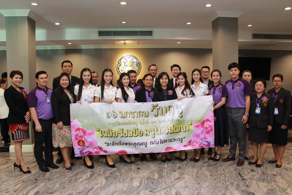 มหาวิทยาลัยสวนดุสิต ร่วมกับกระทรวงศึกษาธิการ โดยคุรุสภา และภาคเอกชน เข้าติดดอกกล้วยไม้ พล.อ.ประยุทธ์ จันทร์โอชา นายกรัฐมนตรี และคณะรัฐมนตรีเพื่อประชาสัมพันธ์งานวันครู ครั้งที่ 62 ประจำปี 2561 “เฉลิมรัชสมัย ครูไทยพัฒนา”เพื่อเฉลิมพระเกียรติสมเด็จพระเจ้าอยู่หัวมหาวชิราลงกรณ บดินทรเทพยวรางกูร รัชกาลที่ 10 อีกทั้งเป็นการรำลึกถึงพระคุณบูรพาจารย์ ส่งเสริมยกย่องเชิดชูเกียรติครูและผู้ประกอบวิชาชีพทางการศึกษา ณ ทำเนียบรัฐบาล วันที่ 9 มกราคม 2561 (ภาพ/ข่าว :พิพัฒน์พล เพ็ญเกิด )
