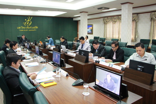 ผู้ช่วยศาสตราจารย์ ดร.เทอดศักดิ์ ศรีสุรพล ประธานสภาคณาจารย์และพนักงาน มหาวิทยาลัยสวนดุสิต เป็นประธานการประชุมสภาคณาจารย์และพนักงาน มหาวิทยาลัยสวนดุสิต ครั้งที่ 2(23)/2561 โดยมีวาระสำคัญเรื่อง สรุปรายรับ-รายจ่าย บัญชีสภาคณาจารย์และพนักงาน เดือนกุมภาพันธ์ รายงานความคืบหน้าโครงการเพชรเฟื่องฟ้าขจร ประจำปี พ.ศ.2560 (ร่าง) แผนกลยุทธ์มหาวิทยาลัยสวนดุสิต พ.ศ. 2561-2563 การนำเงินกองทุนสวัสดิการและสิทธิประโยชน์ของพนักงานมหาวิทยาลัยสวนดุสิต เพื่อจัดหาแหล่งลงทุนให้ได้ผลตอบแทนสูงสุด ฯลฯ ณ ห้องประชุมลำพอง 2 มหาวิทยาลัยสวนดุสิต วันที่ 21 กุมภาพันธ์ 2561 (ภาพ/ข่าว:พิพัฒน์พล เพ็ญเกิด)