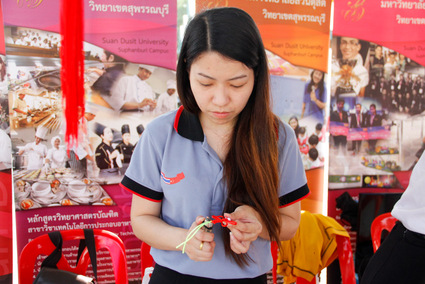 มหาวิทยาลัยสวนดุสิต วิทยาเขตสุพรรณบุรี ร่วมโครงการปฏิบัติราชการเพื่อให้บริการประชาชน จัดโดยจังหวัดสุพรรณบุรี โดยนำนักศึกษาและเจ้าหน้าที่ จากโครงการบูรณาการบริการวิชาการมหาวิทยาลัยสวนดุสิต “มหาวิทยาลัยสวนดุสิตเคลื่อนที่ปี 61” ในครั้งนี้สาขาวิชาภาษาจีน ได้สาธิตการถักเชือกจีน ให้ประประชาชนที่มาร่วมงานได้ลองปฏิบัติและนำกลับเป็นที่ระลึก บรรยากาศภายในงานยังมีหน่วยงานภาครัฐ รัฐวิสาหกิจและภาคเอกชนอีกหลายหน่วยงาน ร่วมให้บริการประชาชน ณ วัดดอนไร่ ตำบลหนองสะเดา อำเภอสามชุก จังหวัดสุพรรณบุรี ในวันพฤหัสบดีที่ 22 กุมภาพันธ์ 2561