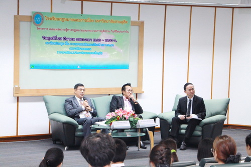 อาจารย์วัลลภ ห่างไธสง รองคณบดีฝ่ายกิจการนักศึกษา โรงเรียนกฎหมายและการเมือง มหาวิทยาลัยสวนดุสิต เป็นประธานเปิดโครงการเผยแพร่ความรู้ทางกฎหมายและกระบวนการยุติธรรมในชีวิตประจำวัน โดยได้รับเกียรติจาก คุณสถาพร ภักดีวงค์ อัยการผู้เชี่ยวชาญพิเศษ สำนักงานอัยการพิเศษ ฝ่ายคดีอาญา 1 สำนักงานอัยการสูงสุด และคุณประมาณ เลืองวัฒนะวณิช ประธานกรรมการบริษัท อาณาจักรกฎหมาย จำกัด ร่วมเสวนาในหัวข้อ เผยแพร่ความรู้ทางกฎหมายและกระบวนการยุติธรรมในชีวิตประจำวัน ณ ห้องประชุมชั้น 4 อาคารเฉลิมพระเกียรติ 50 พรรษา มหาวชิราลงกร อาคารบัณฑิตวิทยาลัย มหาวิทยาลัยสวนดุสิต เมื่อวันที่ 23 มีนาคม 2561