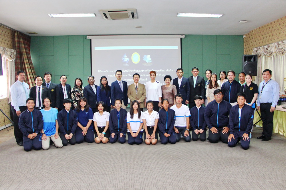รองศาสตราจารย์ ดร.ศิโรจน์ ผลพันธิน อธิการบดีมหาวิทยาลัยสวนดุสิต มอบหมายให้ ผู้ช่วยศาสตราจารย์ ดร.พิทักษ์ จันทร์เจริญ รองอธิการบดีฝ่ายบริหาร เป็นประธานในพิธีมอบเงินรางวัลแก่นักกีฬาที่ทำเหรียญและรางวัลสนับสนุนพัฒนาทีมกีฬา ที่สร้างชื่อเสียงแก่มหาวิทยาลัย ในการเข้าร่วมการแข่งขันกีฬามหาวิทยาลัยแห่งประเทศไทย ครั้งที่ ๔๕ “ราชมงคลธัญบุรีเกมส์” โดยมี คุณโรจนา ผลพันธิน ผู้ช่วยศาสตราจารย์ ดร.ชนะศึก นิชานนท์ รองศาสตราจารย์พัชรี สวนแก้ว ดร.จิตต์วิมล คล้ายสุบรรณ ดร.นกุล ฤกษ์จริจุมพล ผู้บริหาร และคณาจารย์ ร่วมแสดงความยินดี เมื่อวันที่ ๒๕ เมษายน ๒๕๖๑ ณ ห้องประชุมลำพอง ๑ มหาวิทยาลัยสวนดุสิต