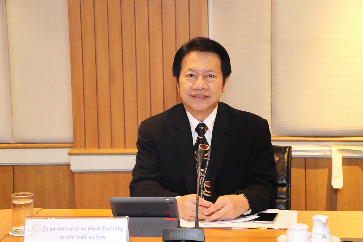รองศาสตราจารย์ ดร.ศิโรจน์ ผลพันธิน อธิการบดีมหาวิทยาลัยสวนดุสิต เป็นประธานการประชุมรองอธิการบดี มหาวิทยาลัยสวนดุสิต ครั้งที่ 9(30)/2561 มีวาระสำคัญเรื่อง แนวทางการพัฒนานักศึกษาและการใช้ชีวิตใมหาวิทยาลัย กับนักศึกษาต่างชาติ แจ้งผลการตรวจประเมินตามเกณฑ์ห้องสมุดสีเขียว ประจำปี 2561 การขอจ้างอาจารย์กรณีพิเศษ 1 ราย การดำเนินการตามแผนบริหารทรัพยากรบุคคลและแผนพัฒนาผู้ปฏิบัติงาน ปีงบประมาณ พ.ศ. 2561 – 2564 ฯลฯ ณ ห้องประชุมลิขิต 2 โรงแรมสวนดุสิต เพลส มหาวิทยาลัยสวนดุสิต วันที่ 3 ตุลาคม 2561 (ภาพ/ข่าว:พิพัฒน์พล เพ็ญเกิด)