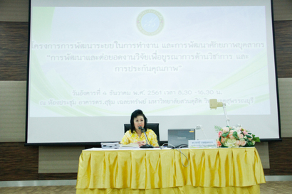 กองกลาง สำนักงานวิทยาเขตสุพรรณบุรี จัดโครงการอบรมการพัฒนาระบบในการทำงาน และการพัฒนาศักยภาพบุคลากร “การพัฒนาและต่อยอดงานวิจัยเพื่อบูรณาการด้านวิชาการและการประกันคุณภาพการศึกษา” โดยมี ผู้ช่วยศาสตราจารย์แก้วตา ขาวเหลือง ข้าราชการบำนาญ (อดีตดำรงตำแหน่งผู้อำนวยการสำนักงานประกันคุณภาพ มหาวิทยาลัยเทคโนโลยีราชมงคลพระนคร) เป็นวิทยากรในการบรรยาย และได้รับเกียรติจาก ดร.วรานี เวสสุนทรเทพ รองอธิการบดีฝ่ายวิทยาเขตสุพรรณบุรี เป็นประธารเปิดโครงการอบรมในครั้งนี้ ในวันที่ 4 ธันวาคม 2561 เวลา 8.30 – 16.30 น. ณ ห้องประชุมอาคาร ดร.สุขุม เฉลยทรัพย์ มหาวิทาลัยสวนดุสิต วิทยาเขตสุพรรณบุรี