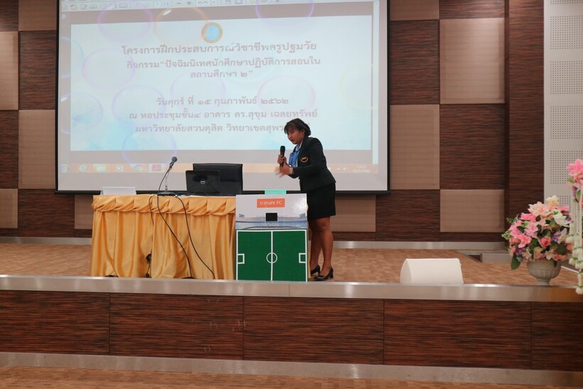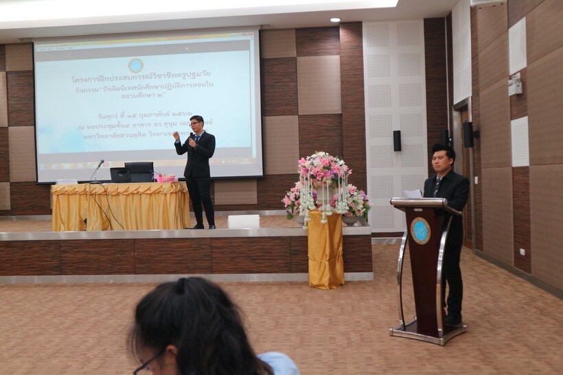 ฝ่ายฝึกประสบการณ์วิชาชีพครู หลักสูตรศึกษาศาสตรบัณฑิต สาขาวิชาการศึกษาปฐมวัย มหาวิทยาลัยสวนดุสิต วิทยาเขตสุพรรณบุรี ได้จัดกิจกรรม “ปัจฉิมนิเทศและนิทรรศการนวัตกรรมและงานวิจัยในชั้นเรียนสำหรับเด็กปฐมวัย” ให้แก่นักศึกษาหลักสูตรการศึกษาปฐมวัยชั้นปีที่ 5 รหัส 57 ในกิจกรรมนี้มีคณะกรรมการในการพิจารณาและตัดสินผลรางวัลประกวดนวัตกรรมและงานวิจัยในชั้นเรียน ได้แก่ ผศ.ดร.สุนทร เทียนงาม อาจารย์กรณิศ ทองสอาด และอาจารย์ธนพรรณ เพชรเศษ นอกจากนี้อาจารย์ทรรศนัย โกวิทยากร และอาจารย์พรพิมล นามวงศ์ ฝ่ายฝึกประสบการณ์วิชาชีพครู ปัจฉิมนิเทศ ในหัวข้อ “เส้นทางสู่ครูปฐมวัยมืออาชีพ” ซึ่งมีจุดประสงค์เพื่อให้นักศึกษาที่จบออกไปนั้นเป็นบัณฑิตที่รับใช้สังคมอย่างมีคุณภาพ กิจกรรมจัดขึ้นในวันศุกร์ที่ 15 กุมภาพันธ์ 2562 เวลา 9.00 – 16.30 น. ณ ห้องประชุม อาคาร ดร.สุขุม เฉลยทรัพย์ มหาวิทยาลัยสวนดุสิต วิทยาเขตสุพรรณบุรี
