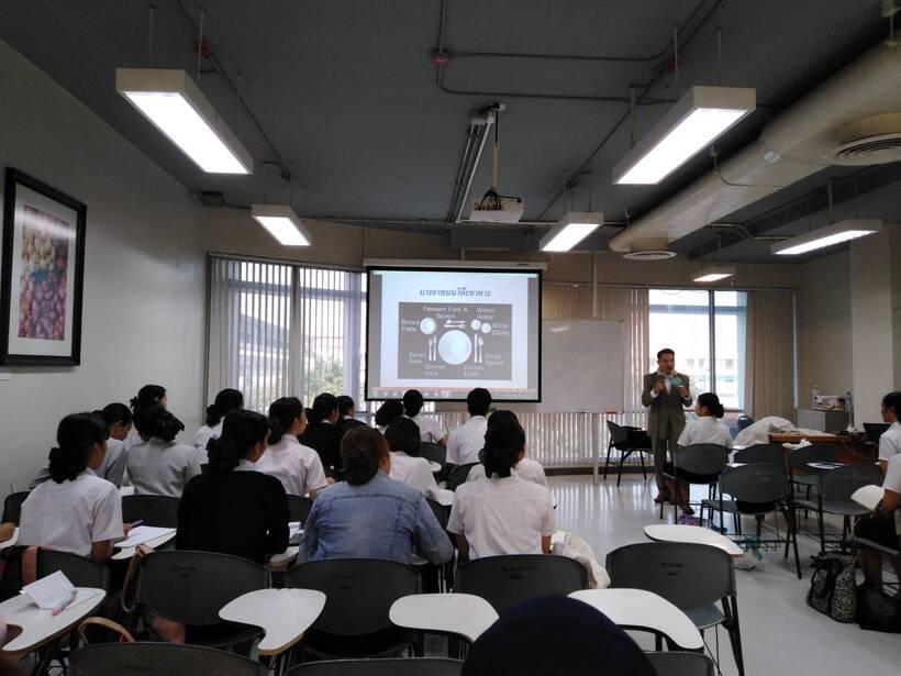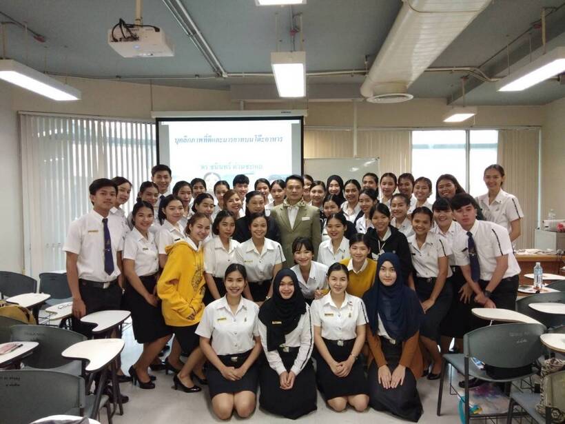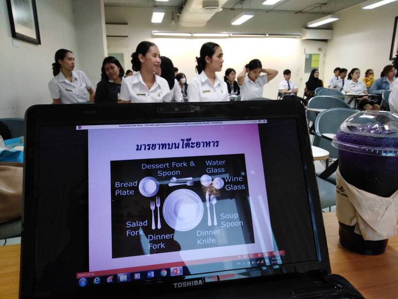 สาขาวิชาเลขานุการทางการแพทย์ คณะวิทยาการจัดการ มสด. ได้จัดกิจกรรมการพัฒนาบุคลิกภาพและมารยาทสังคม : มารยาทไทยและการ วางตัวในสังคม มารยาทบนโต๊ะอาหาร