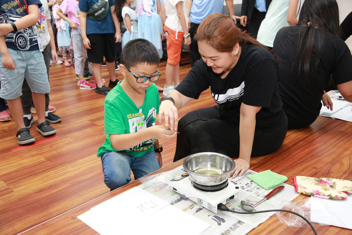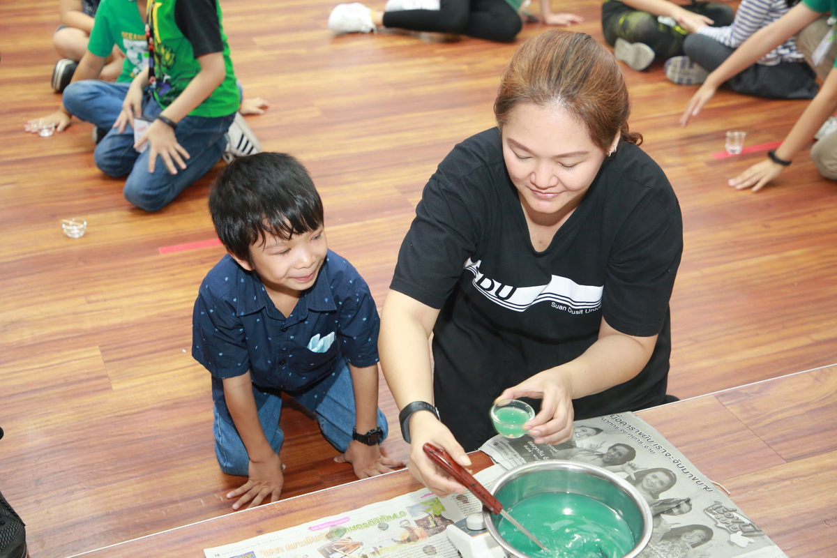 Theme 1 : Earn and Learn : Learning with Professionals สำหรับเด็กประถมศึกษา กิจกรรมในช่วงเช้าเปิดโอกาสให้เด็กๆ ได้เรียนรู้การหารายได้เองผ่านการทำงานจริงกับหน่วยงานต่างๆ ภายในมหาวิทยาลัย อาทิ ศูนย์บริการสื่อและสิ่งพิมพ์กราฟฟิคไซท์ สำนักวิทยบริการและเทคโนโลยีสารสนเทศ กองประชาสัมพันธ์ สวนดุสิตโพล โรงแรมสวนดุสิต เพลส ฯลฯ และในช่วงบ่ายเด็กๆ ได้เรียนรู้ กิจกรรม การตรวจสอบคุณภาพอากาศ โดย ดร.พรธิกา เทพประสิทธิ์ ผู้อำนวยการศูนย์สิ่งแวดล้อม และคณะผู้เชี่ยวชาญด้านสิ่งแวดล้อม กิจกรรมนี้เด็กๆ ได้เรียนรู้สาเหตุการเกิดฝุ่น PM 2.5 เทคโนโลยีการตรวจวัดฝุ่น การป้องกันและฝุ่น PM 2.5 กับท้องถิ่นของเรา ฯลฯ