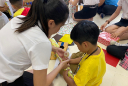 กิจกรรม Dye bag ซึ่งเด็กได้ใช้จินตนาการในการสร้างสรรค์ถุงผ้ามัดย้อม