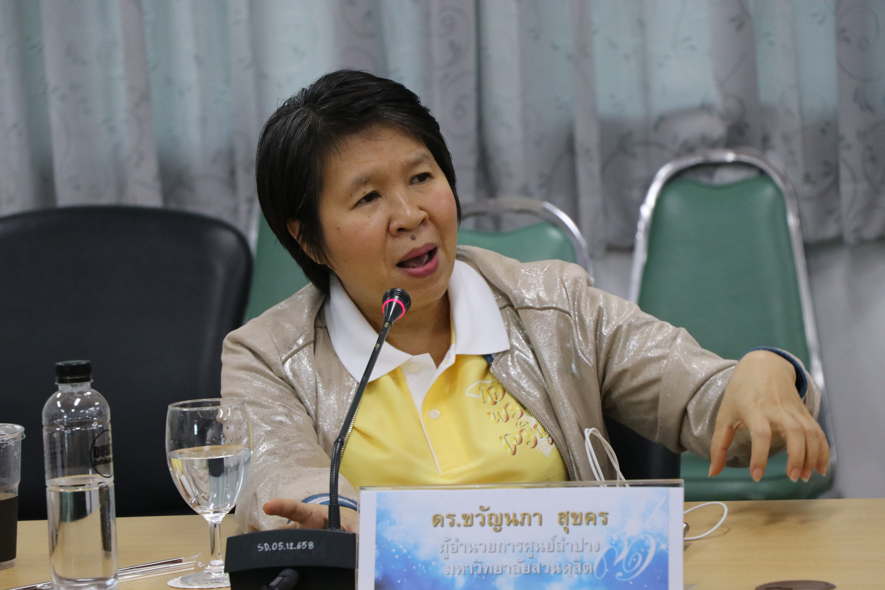 ผู้ช่วยศาสตราจารย์ ดร.กนกกานต์ วีระกุล ผู้ช่วยอธิการบดี ว่าที่ รต.ดร.ธนพัฒน์ แสงรุ่งเรือง คณบดีโรงเรียนการเรือน อาจารย์ธิติมา แก้วมณี รองคณบดีโรงเรียนการเรือน และ ดร.จันทร์จนา ศิริพันธ์วัฒนา ประธานหลักสูตรฯ เทคโนโลยีการประกอบอาหารและการบริการ ประชุม ร่วมกับ ดร.ขวัญนภา สุขคร ผู้อำนวยการศูนย์การศึกษานอกที่ตั้ง ลำปาง คณะผู้บริหาร และ บุคลากรสาขาวิชาเทคโนโลยีการประกอบอาหารและการบริการ เพื่อถ่ายทอดนโยบายจากอธิการบดีลงสู่การปฏิบัติ ณ ห้องประชุมชั้น 4 อาคารธุรกิจการบิน มหาวิทยาลัยสวนดุสิต ศูนย์การศึกษานอกที่ตั้ง ลำปาง เมื่อวันที่ 17 กรกฎาคม 2563