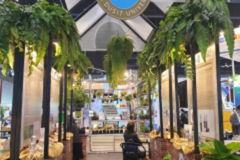 สถาบันวิจัยและพัฒนา มหาวิทยาลัยสวนดุสิต นำทีมนักวิจัยเข้าร่วมจัดแสดงนวัตกรรมจากงานวิจัย ในงาน มหกรรมงานวิจัยแห่งชาติ 2563 (Thailand Research Expo 2020) ในธีมเศรษฐกิจฐานชีวภาพเพื่อการขับเคลื่อนเศรษฐกิจของประเทศ (Biological economy) โดยนำนวัตกรรมด้านเครื่องสำอางจากพืชสมุนไพรเข้าร่วมจัดแสดงทั้งสิ้น 6 ผลงาน ได้แก่ (1) ผลิตภัณฑ์ทำความสะอาดผิวกายสูตรอ่อนโยนจากสารสกัดผักเบี้ยทะเล (2) สารเพิ่มประสิทธิภาพการกันเสียในผลิตภัณฑ์เครื่องสำอางจากสารสกัดจากสมอไทย (3) ผลิตภัณฑ์ สปาจากวัสดุเพาะถั่งเช่าสีทอง (4) ครีมพอกหน้าต้านสิวจากสารสกัดข้าวแดง (5) ครีมเจลพอกหน้าจากสารสกัดข้าวหอมมะลิแดง และ (6) ครีมผิวกระจ่างใสจากสารสกัดมะหาดและชะเอมเทศ นอกจากนี้ ยังได้มีการจัดแสดงผลิตภัณฑ์จากว่านหางจระเข้ภายใต้แบรนด์ Homkhajorn จำนวน 3 ผลิตภัณฑ์ เพื่อเป็นการประชาสัมพันธ์โครงการแปลงสาธิตเกษตรปลอดภัยอัจฉริยะของมหาวิทยาลัยสวนดุสิต ซึ่งตั้งอยู่ ณ พื้นที่มหาวิทยาลัยสวนดุสิต วิทยาเขตสุพรรณบุรี หรือ หอมขจรฟาร์ม ได้แก่ (1) Homkhajorn Aloe Hand Sanitizer Gel เป็นเจลแอลกอฮอล์สูตรพรีเมียม มีส่วนประกอบหลักคือ สารสกัดว่านหางจระเข้ สารสกัดข้าวโบราณ 3 สี สารสกัดถั่วเหลืองญี่ปุ่น และ Ethyl Alcohol 75% (Food Grade) ใช้สำหรับทำความสะอาดมือ มีคุณสมบัติช่วยลดการสะสมของแบคทีเรีย โดยไม่ต้องล้างน้ำ เนื้อเจลซึมไวไม่เหนอะหนะ ช่วยให้ผิวมือนุ่มชุ่มชื้น ไม่แห้งกร้าน เหมาะกับทุกคนในครอบครัว ใช้ได้บ่อยเท่าที่ต้องการ (2) Homkhajorn Anti-Bacterial Aloe Shower Gel เป็นผลิตภัณฑ์ทำความสะอาดผิวกาย มีส่วนประกอบหลักคือ วิตามินบี 3 และน้ำแร่บริสุทธิ์ มีคุณสมบัติช่วยลดการสะสมของแบคทีเรีย เหมาะสำหรับทุกสภาพผิว สามารถล้างออกได้ง่าย มีกลิ่นหอมสดชื่น ช่วยเพิ่มความชุ่มชื้นให้ผิว ฟื้นบำรุงผิวให้มีสุขภาพดีเมื่อใช้เป็นประจำอย่างต่อเนื่อง และ (3) Homkhajorn Anti-Bacterial Aloe Hand Wash เป็นผลิตภัณฑ์ทำความสะอาดมือ มีส่วนประกอบหลักคือ สารสกัดว่านหางจระเข้ และสารสกัดบัว มีคุณสมบัติช่วยลดการสะสมของแบคทีเรีย มีกลิ่นหอมสดชื่น ช่วยดูแลผิวอย่างอ่อนโยนให้มีความนุ่ม ชุ่มชื้น ไม่แห้งกร้าน น่าสัมผัส และมีสุขอนามัยที่ดี เหมาะกับทุกคนในครอบครัว สามารถใช้ได้บ่อยเท่าที่ต้องการ กิจกรรมดังกล่าวจัดขึ้น ณ โรงแรมเซ็นทาราแกรนด์และบางกอกคอนเวนชันเซ็นเตอร์ เซ็นทรัลเวิลด์ กรุงเทพฯ ระหว่างวันที่ 2 – 6 สิงหาคม 2563