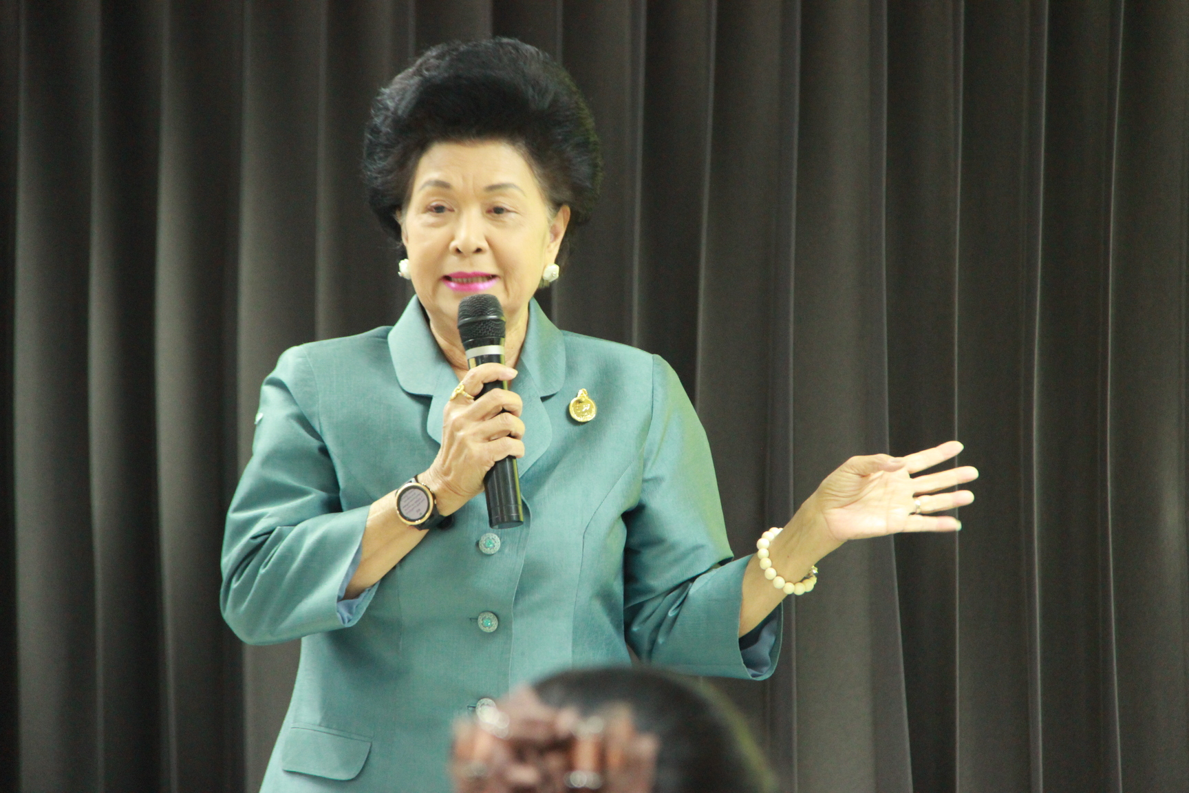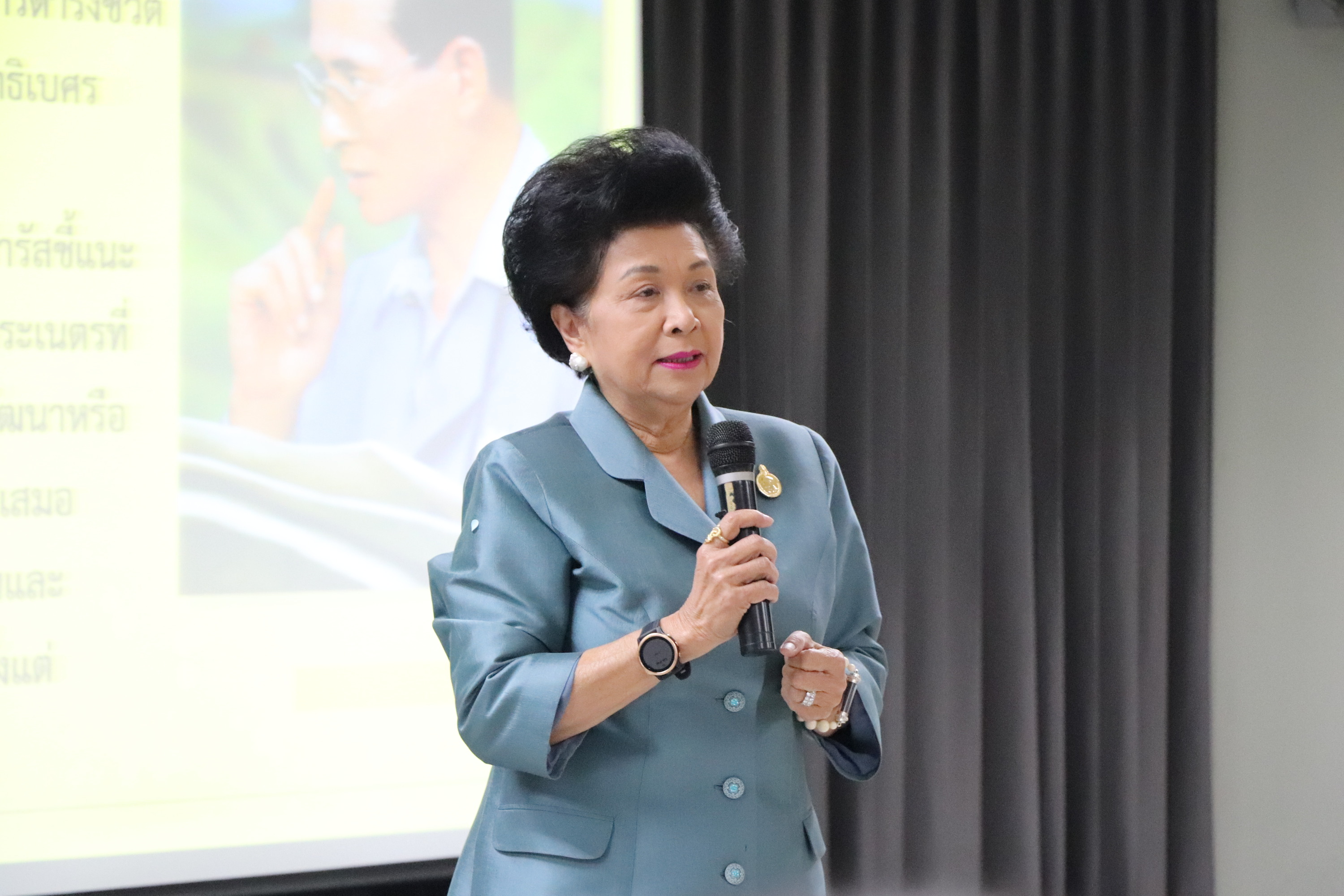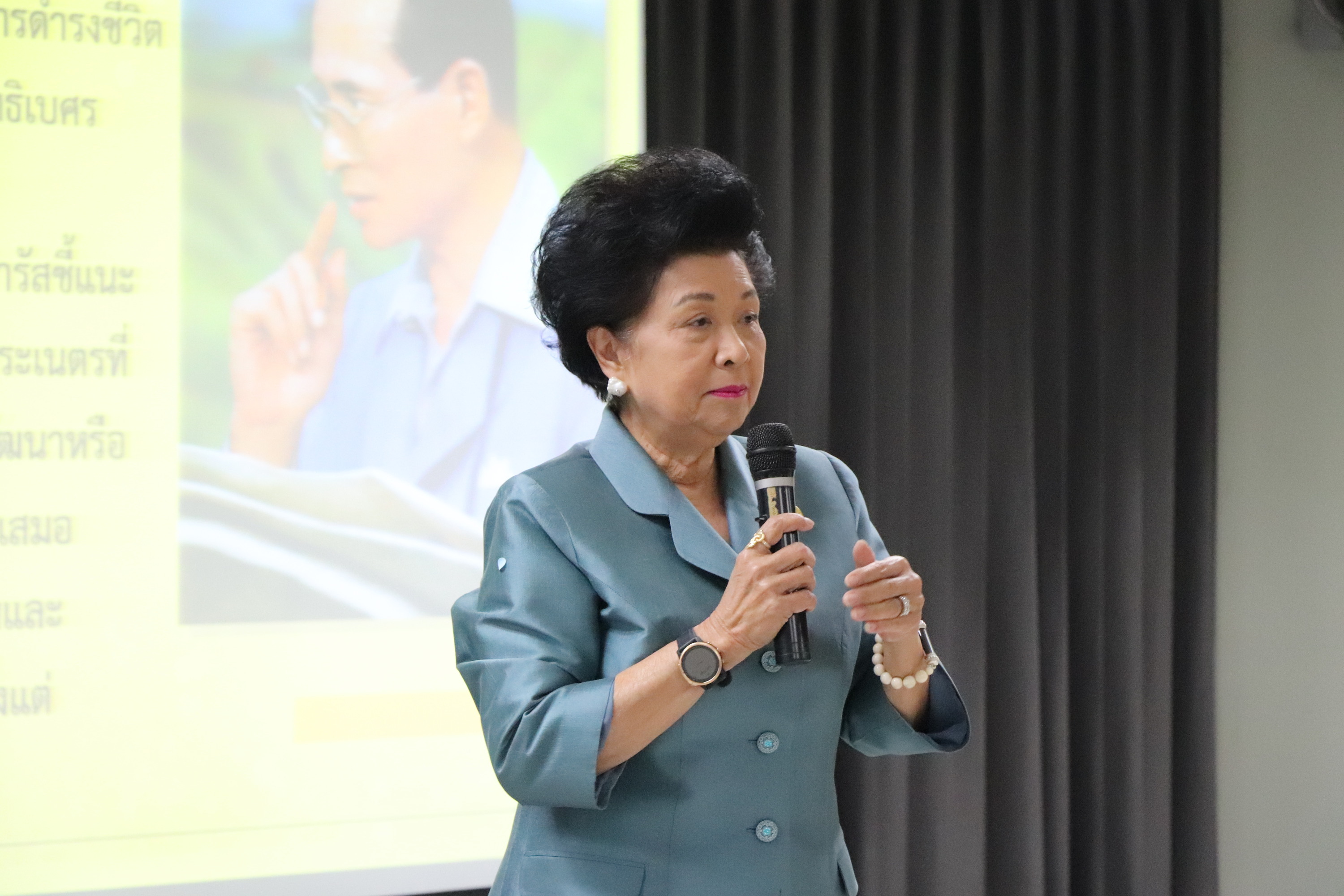 รศ.พัชรี สวนแก้ว รองอธิการบดีฝ่ายกิจการนักศึกษา บรรยายเรื่อง หลักปรัชญาเศรษฐกิจพอเพียง
