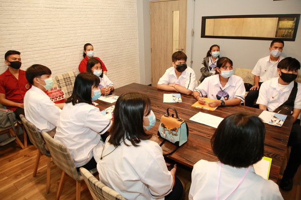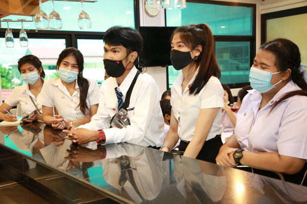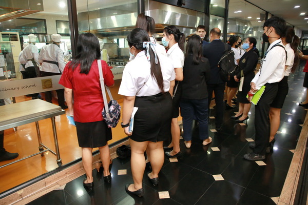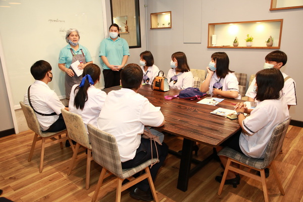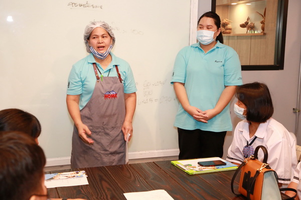 คุณสรินดา ศักดิ์ศรี และคุณวิภา เมืองรมย์ พนักงานสวนดุสิตโฮมเบเกอรี่ พร้อมด้วย คุณภาณุภณ พุทธนานนท์ เจ้าหน้าที่ประชาสัมพันธ์ ศูนย์ฝึกปฏิบัติการอาหารนานาชาติ มหาวิทยาลัยสวนดุสิต กล่าวต้อนรับพร้อมบรรยายเกี่ยวกับการผลิตขนมอบและอาหาร การจำหน่ายผลิตภัณฑ์ ให้กับคณะศึกษาดูงานจากศูนย์บ่มเพาะผู้ประกอบการอาชีวศึกษา วิทยาลัยบริหารธุรกิจและการท่องเที่ยวกรุงเทพ พร้อมทั้งเยี่ยมชมสวนดุสิตโฮมเบเกอรี่และศูนย์ฝึกปฏิบัติการอาหารนานาชาติ เมื่อวันที่ 11 กันยายน 2563