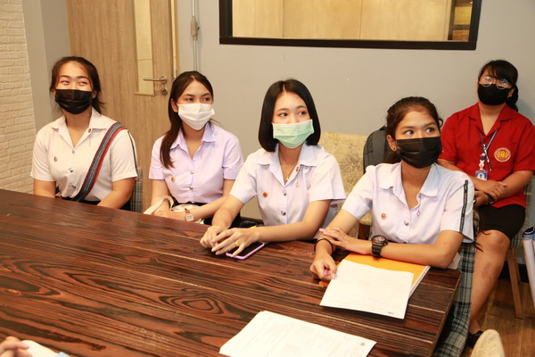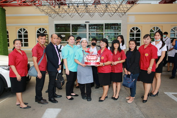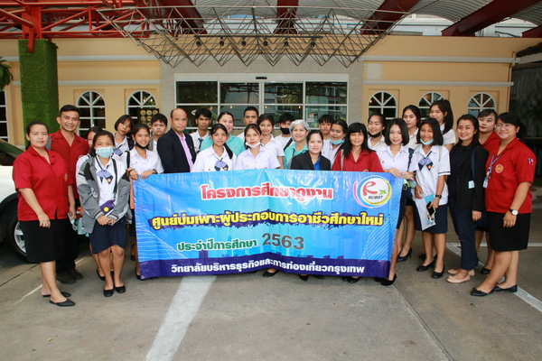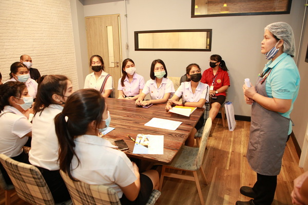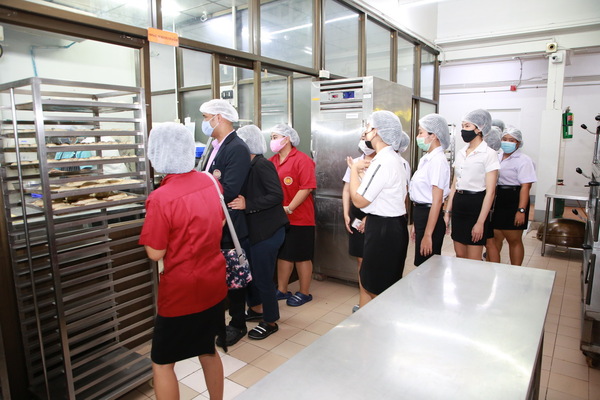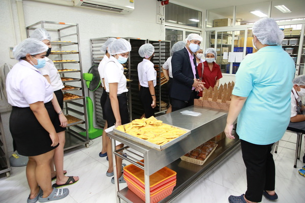 คุณสรินดา ศักดิ์ศรี และคุณวิภา เมืองรมย์ พนักงานสวนดุสิตโฮมเบเกอรี่ พร้อมด้วย คุณภาณุภณ พุทธนานนท์ เจ้าหน้าที่ประชาสัมพันธ์ ศูนย์ฝึกปฏิบัติการอาหารนานาชาติ มหาวิทยาลัยสวนดุสิต กล่าวต้อนรับพร้อมบรรยายเกี่ยวกับการผลิตขนมอบและอาหาร การจำหน่ายผลิตภัณฑ์ ให้กับคณะศึกษาดูงานจากศูนย์บ่มเพาะผู้ประกอบการอาชีวศึกษา วิทยาลัยบริหารธุรกิจและการท่องเที่ยวกรุงเทพ พร้อมทั้งเยี่ยมชมสวนดุสิตโฮมเบเกอรี่และศูนย์ฝึกปฏิบัติการอาหารนานาชาติ เมื่อวันที่ 11 กันยายน 2563