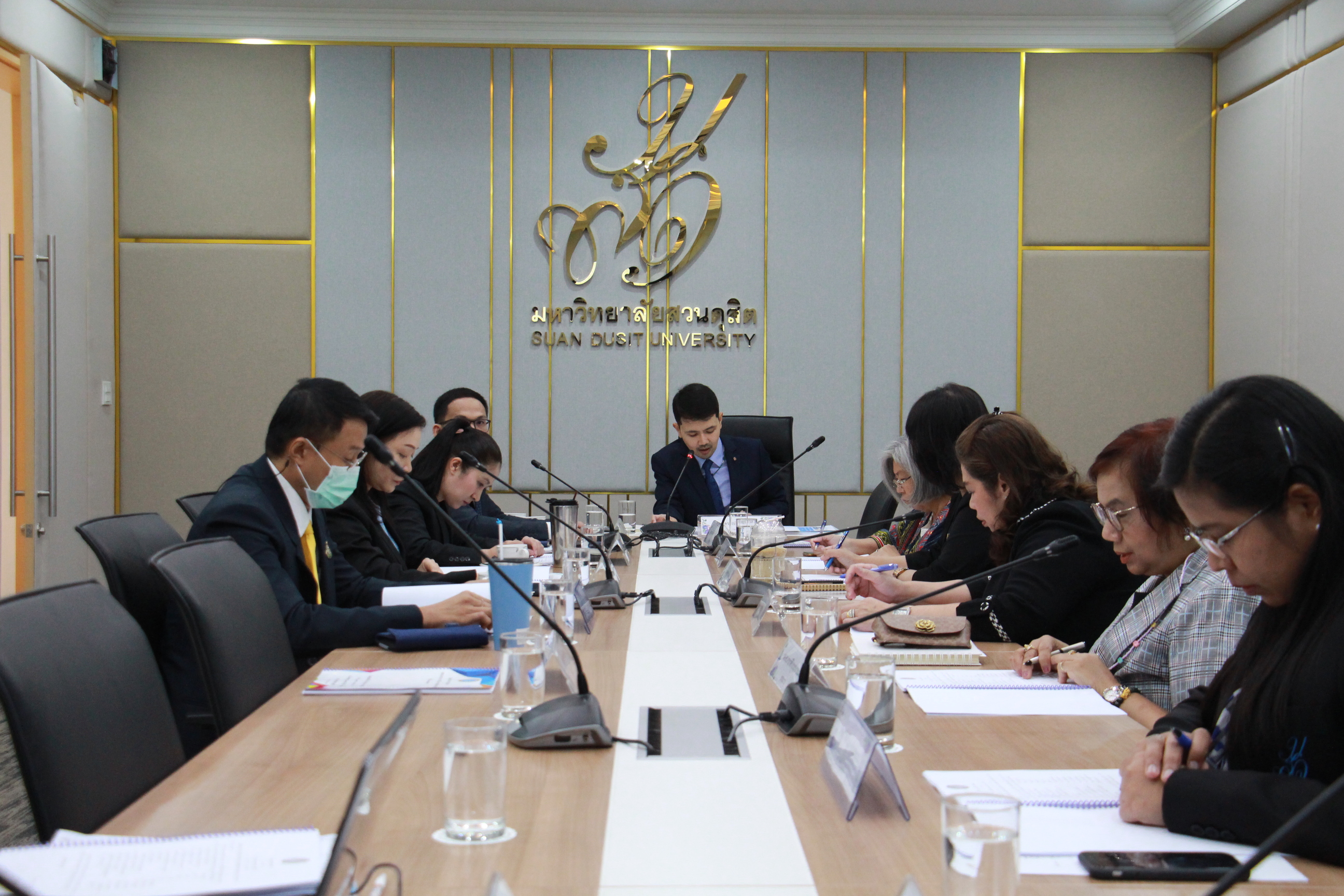 รองศาสตราจารย์ ดร.ชนะศึก นิชานนท์ รองอธิการบดีฝ่ายวิจัยและพัฒนาการศึกษา มหาวิทยาลัยสวนดุสิต เป็นประธานในการประชุมคณะกรรมการบริหารการวิจัย ครั้งที่ 2/2564 โดยมีวาระ เรื่อง (ร่าง) คำสั่งคณะอนุกรรมการกลั่นกรองโครงการวิจัยและนวัตกรรมด้าน ววน. มหาวิทยาลัยสวนดุสิต ประจำปีงบประมาณ 2565, โครงการวิจัยและนวัตกรรมด้าน ววน. มหาวิทยาลัยสวนดุสิต ประจำปีงบประมาณ 2565, รายงานความก้าวหน้าโครงการแปลงสาธิตเกษตรปลอดภัยอัจฉริยะ มหาวิทยาลัยสวนดุสิต ฯลฯ ณ ห้องประชุม 1215 อาคาร 1 ชั้น 2 มหาวิทยาลัยสวนดุสิต วันที่ 3 ธันวาคม 2563