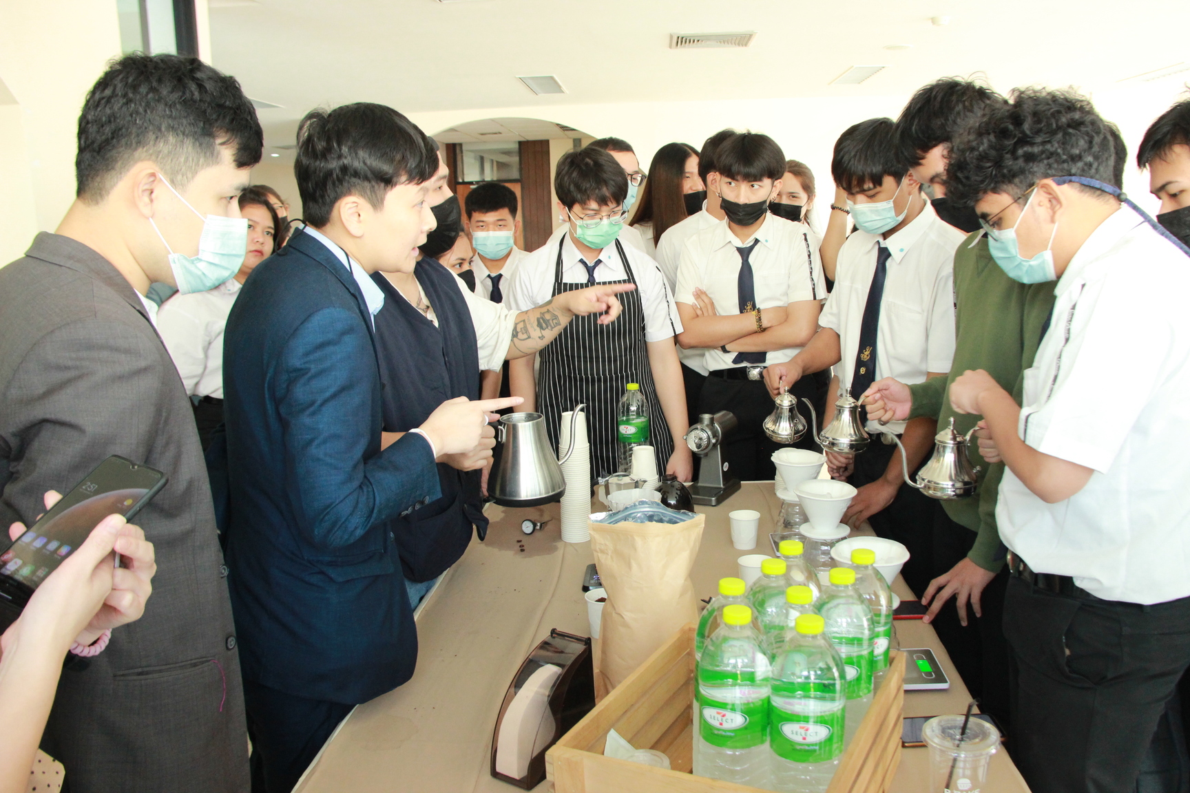 -กิจกรรมสาธิตเทคนิคการชงกาแฟ แบบ Pour Over Coffee หรือ Drip Coffee โดยอาจารย์เธียรรัตน์ ฉัตรภัทรพล และอาจารย์ไกรศักดิ์ พิกุล อาจารย์สาขาการจัดการงานบริการ (หลักสูตรนานาชาติ) โรงเรียนการท่องเที่ยวและการบริการ เป็นวิทยากร