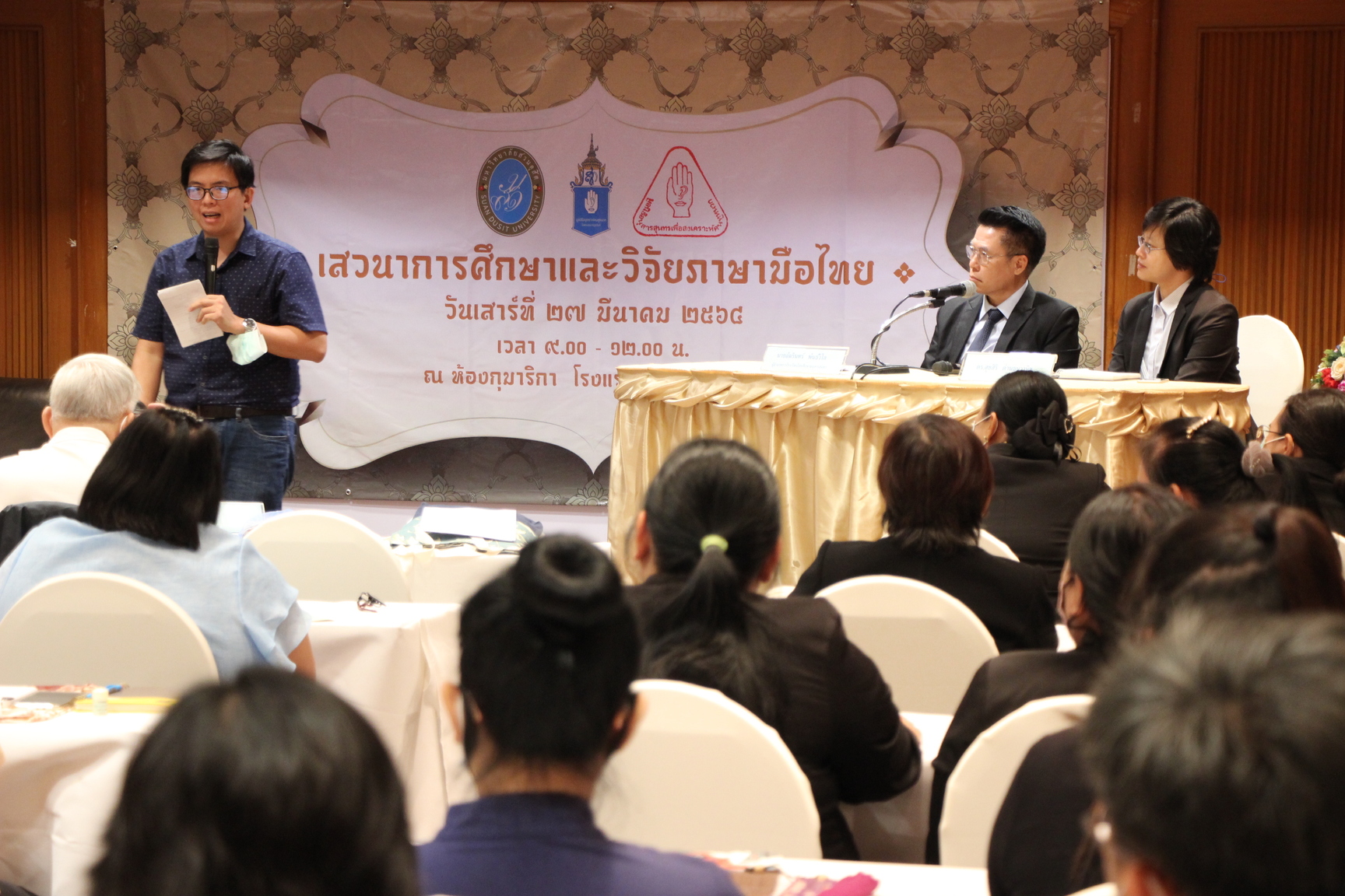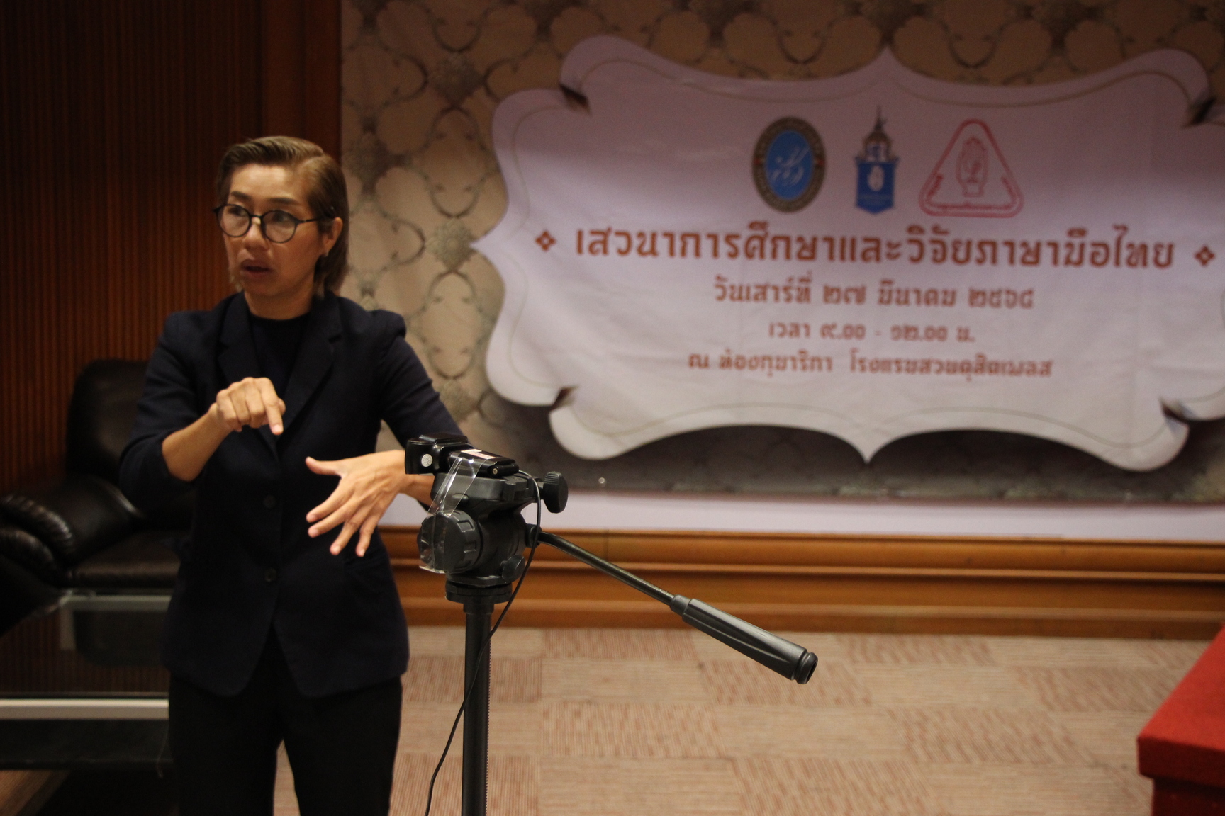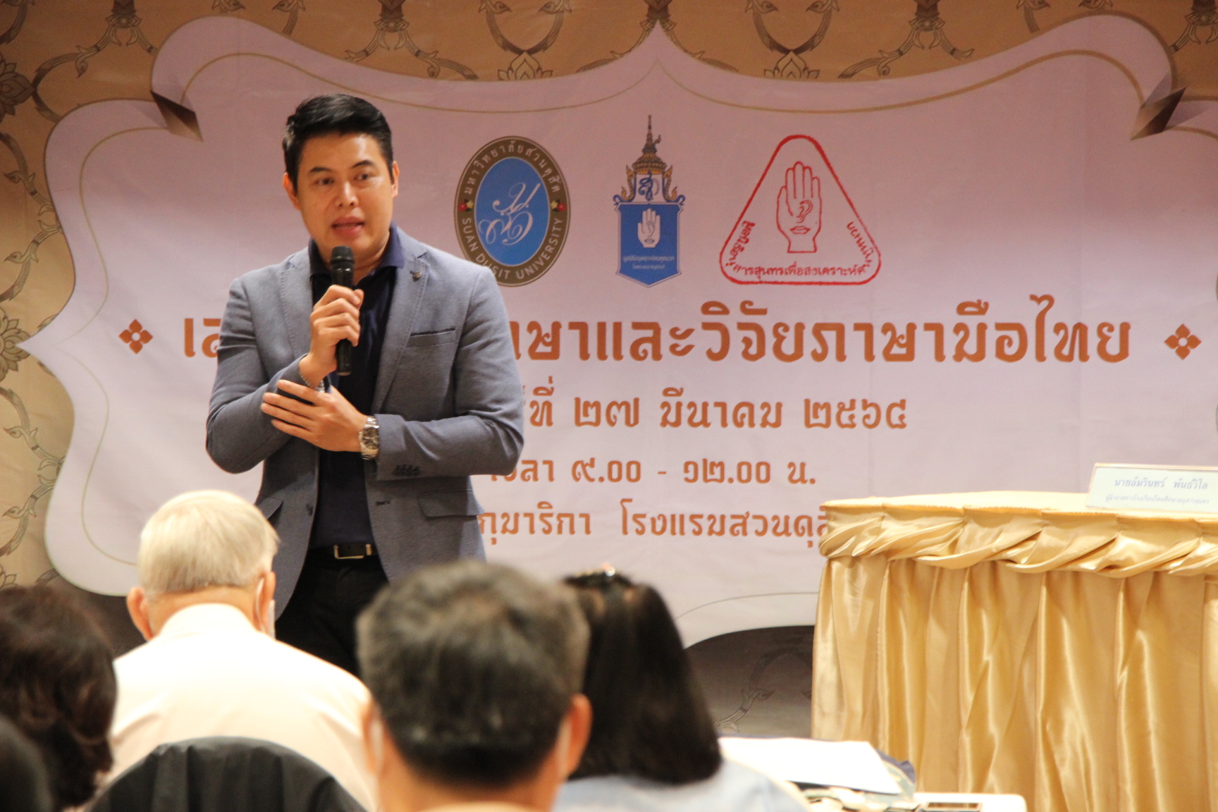 หลักสูตรประกาศนียบัตรบัณฑิต สาขาล่ามภาษามือ มหาวิทยาลัยสวนดุสิต ร่วมกับมูลนิธิอนุเคราะห์คนหูหนวก ในพระบรมราชินูปถัมภ์ และมูลนิธิอนุสารสุนทรเพื่อการสงเคราะห์คนหูหนวกฯ จัดงานเสวนาวิชาการการศึกษาวิจัยภาษามือไทย โดยได้รับเกียรติจาก ดร.สิทธิพร เอี่ยมเสน คณบดีคณะครุศาสตร์ มหาวิทยาลัยสวนดุสิต และนายศุขสนั่น โชติกเสถียร ประธานกรรมการมูลนิธิอนุเคราะห์คนหูหนวก ในพระบรมราชินูปถัมภ์ กล่าวเปิดงาน จากนั้นเป็นการอภิปรายในเรื่องความท้าทายในการสอนภาษามือไทยในโรงเรียนโสตศึกษา และการเสวนาหลักการศึกษาวิจัยและการพัฒนาภาษามือไทย โดยได้รับเกียรติจาก นายอัมรินทร์ พันธ์วิไล ผู้อำนวยการโรงเรียนโสตศึกษาอนุสารสุนทร และดร.สุขสิริ ด่านธนวานิช ร่วมอภิปราย ดำเนินการอภิปราย โดย ดร.มลิวัลย์ ธรรมแสง ประธานหลักสูตรประกาศนียบัตรบัณฑิต สาขาล่ามภาษามือ  และได้รับเกียรติจากนายสมยศ นิมมานเหมินท์ ประธานกรรมการมูลนิธิอนุสารสุนทรเพื่อการสงเคราะห์คนหูหนวกฯ กล่าวปิดงาน งานเสวนาวิชาการการศึกษาวิจัยภาษามือไทย จัดขึ้นเมื่อวันเสาร์ที่ 27 มีนาคม 2564 ณ ห้องกุมาริกา โรงแรมสวนดุสิตเพลส มหาวิทยาลัยสวนดุสิต