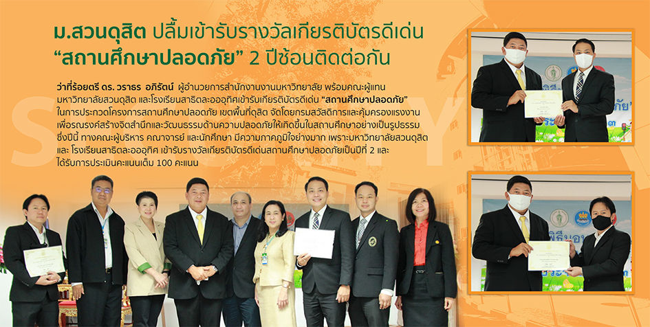 ม.สวนดุสิต ปลื้มเข้ารับรางวัลเกียรติบัตรดีเด่น “สถานศึกษาปลอดภัย” 2 ปีซ้อนติดต่อกัน