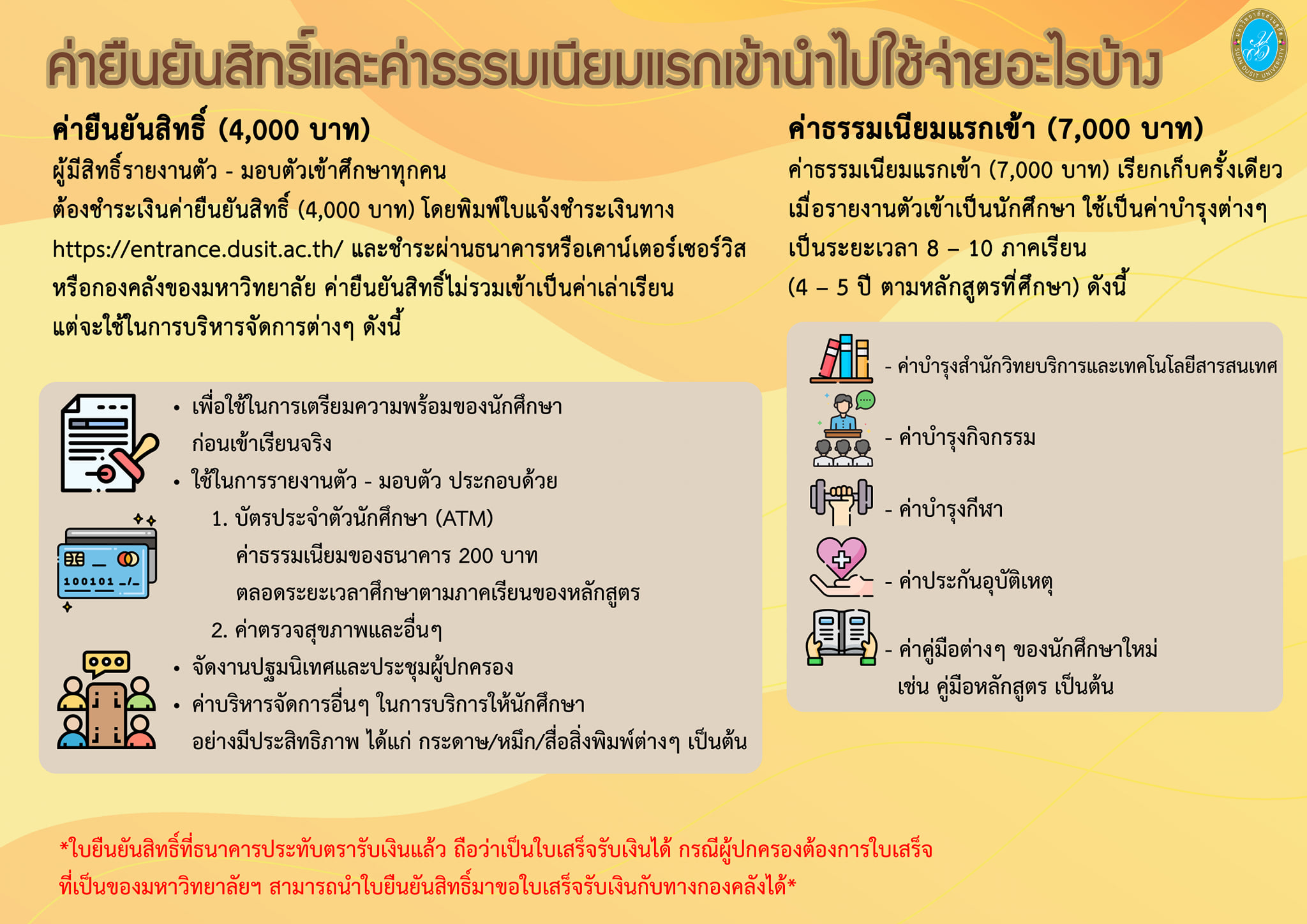 *รายละเอียดค่ายืนยันสิทธิ์และค่าธรรมเนียมแรกเข้า