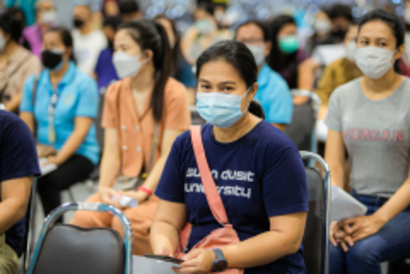 บุคลากรมหาวิทยาลัยสวนดุสิต และโรงเรียนสาธิตละอออุทิศ เข้ารับวัคซีนป้องกันโควิด-19 เข็มสอง โดยได้รับการสนับสนุนจากกระทรวงการอุดมศึกษา วิทยาศาสตร์ วิจัยและนวัตกรรม (อว.) และอำนวยการฉีดวัดซีนโดยบุคลากรทางการแพทย์จากโรงพยาบาลรามาธิบดี ในการนี้ ผศ.ดร.พิทักษ์ จันทร์เจริญ รองอธิการบดีฝ่ายบริหาร พร้อมด้วย ว่าที่ร้อยตรี ดร.วราธร อภิรัตน์ ผู้อำนวยการสำนักงานมหาวิทยาลัย ร่วมสังเกตการณ์และให้กำลังใจบุคลากร ณ สกายฮอลล์ ชั้น 3 ลานจอดรถ ห้างสรรพสินค้าเซ็นทรัล ลาดพร้าว วันพฤหัสบดีที่ 2 กันยายน 2564 (ภาพ : หลักสูตรนิเทศศาสตร์ คณะวิทยาการจัดการ)