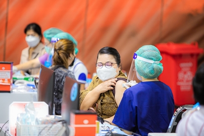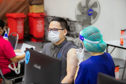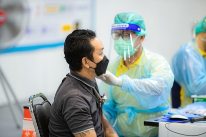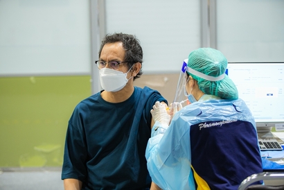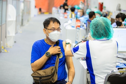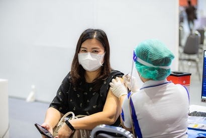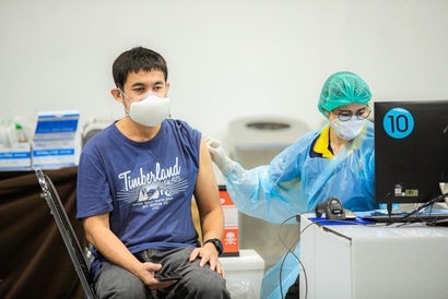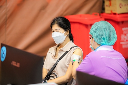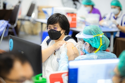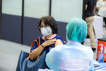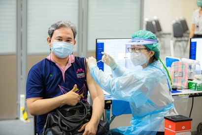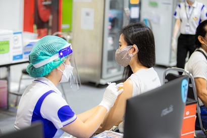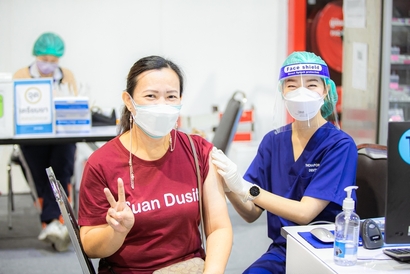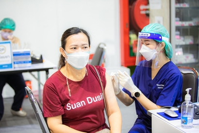 บุคลากรมหาวิทยาลัยสวนดุสิต และโรงเรียนสาธิตละอออุทิศ เข้ารับวัคซีนป้องกันโควิด-19 เข็มสอง โดยได้รับการสนับสนุนจากกระทรวงการอุดมศึกษา วิทยาศาสตร์ วิจัยและนวัตกรรม (อว.) และอำนวยการฉีดวัดซีนโดยบุคลากรทางการแพทย์จากโรงพยาบาลรามาธิบดี ในการนี้ ผศ.ดร.พิทักษ์ จันทร์เจริญ รองอธิการบดีฝ่ายบริหาร พร้อมด้วย ว่าที่ร้อยตรี ดร.วราธร อภิรัตน์ ผู้อำนวยการสำนักงานมหาวิทยาลัย ร่วมสังเกตการณ์และให้กำลังใจบุคลากร ณ สกายฮอลล์ ชั้น 3 ลานจอดรถ ห้างสรรพสินค้าเซ็นทรัล ลาดพร้าว วันพฤหัสบดีที่ 2 กันยายน 2564 (ภาพ : หลักสูตรนิเทศศาสตร์ คณะวิทยาการจัดการ)