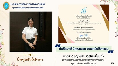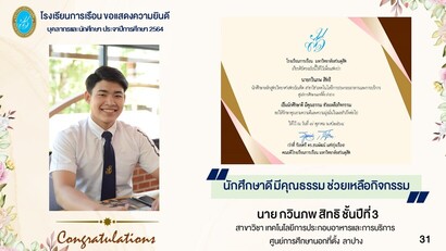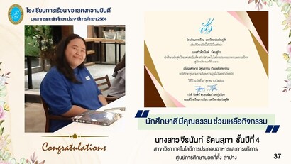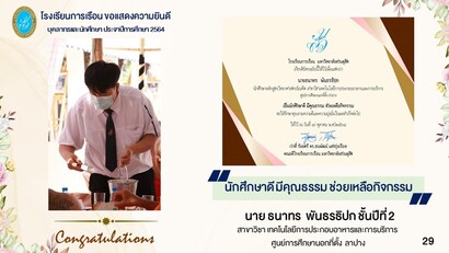 อีกทั้ง ยังมีการมอบเกียรติบัตรให้แก่นักศึกษา “นักศึกษาดีมีคุณธรรม ช่วยเหลือกิจกรรม” โดย