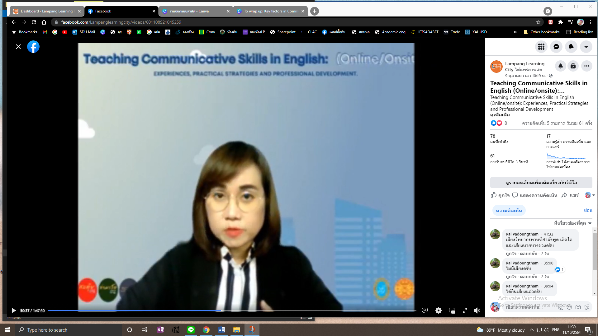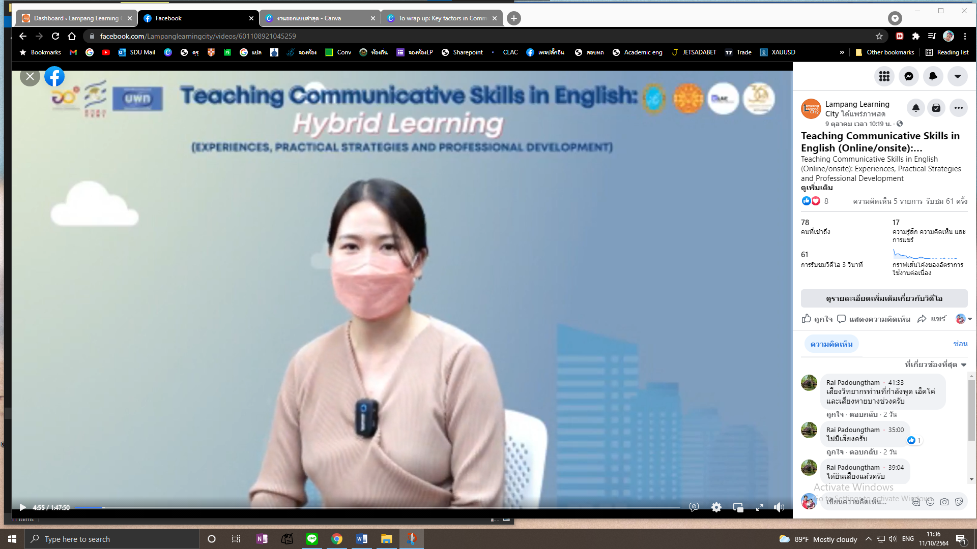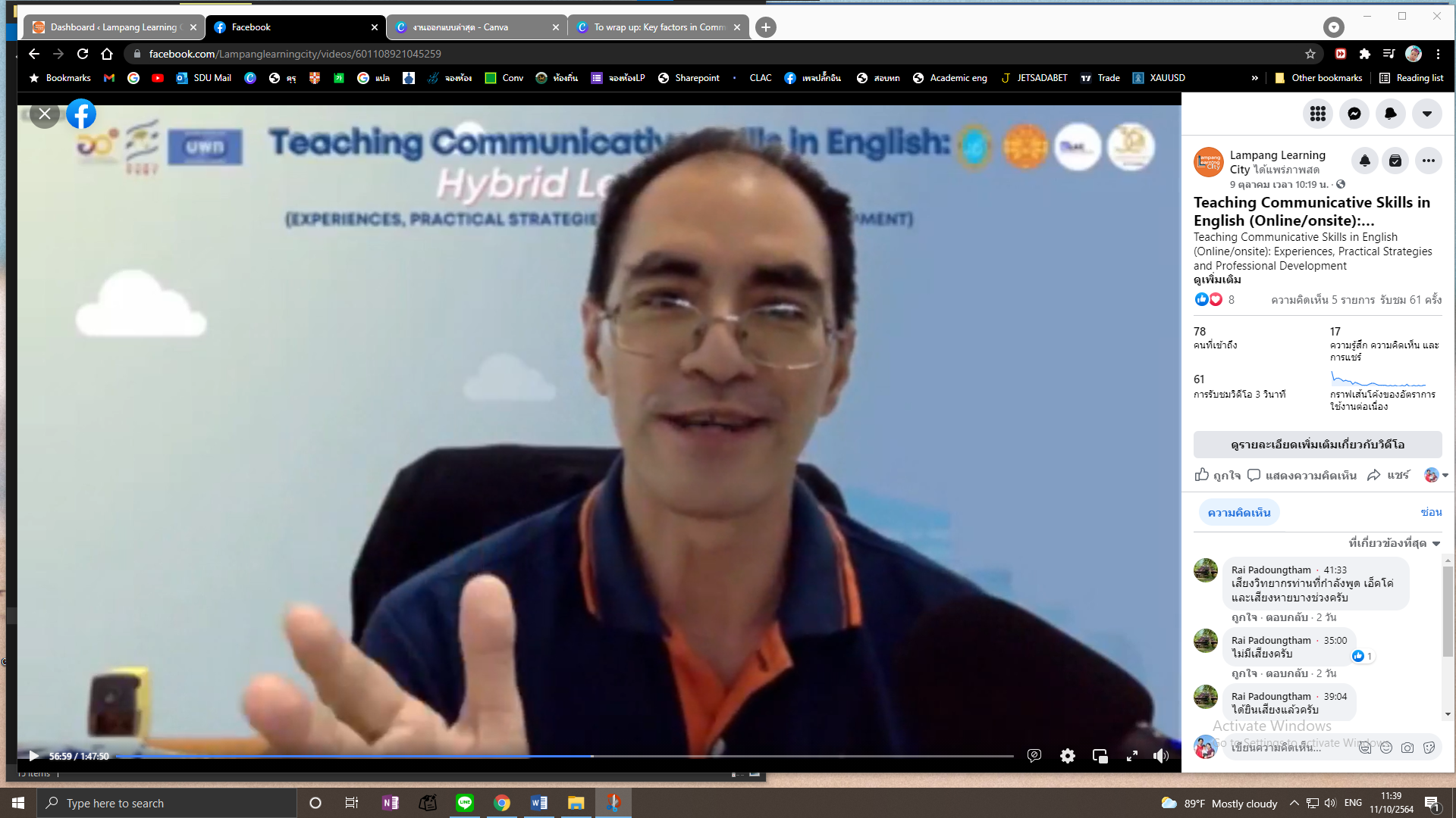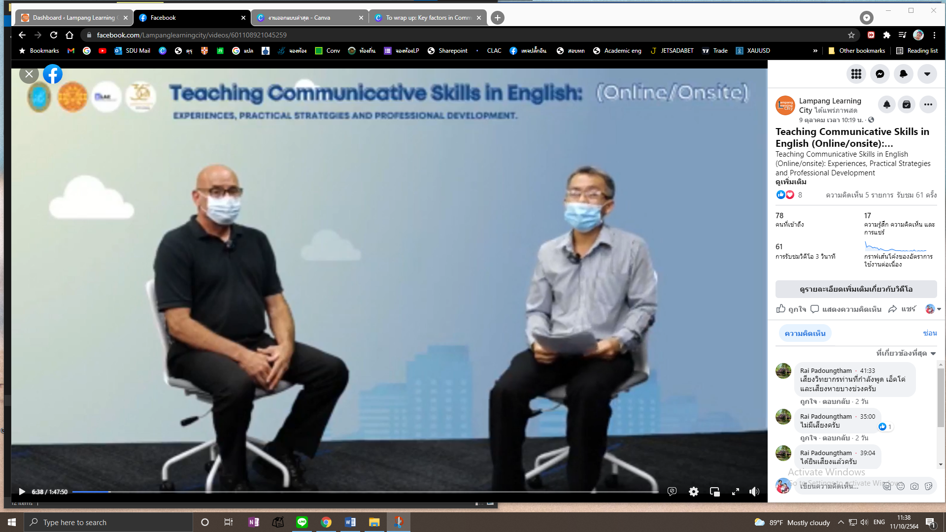 โดยถ่ายทอดสดผ่าน Facebook Live เพจ Lampang Learning City เมื่อวันเสาร์ที่ 9 ตุลาคม พ.ศ. 2564 ที่ผ่านมา