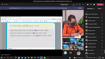 สำนักส่งเสริมวิชาการและงานทะเบียน จัดประชุม “การคัดเลือกบุคคลเข้าศึกษามหาวิทยาลัยสวนดุสิต ประจำปีการศึกษา 2565” โดยได้รับเกียรติจาก  รศ.ดร.ศิโรจน์ ผลพันธิน อธิการบดีมหาวิทยาลัยสวนดุสิต มามอบนโยบายการรับนักศึกษา ประจำปีการศึกษา 2565 และ ดร.สุวมาลย์ ม่วงประเสริฐ รองอธิการบดีฝ่ายวิชาการ มาให้แนวทางการคัดเลือกบุคคลเข้าศึกษาผ่านระบบ TCAS ประจำปีการศึกษา 2565 ณ ห้องประชุมศาลาชื่นอารมณ์ มหาวิทยาลัยสวนดุสิต และผ่านระบบออนไลน์ Microsoft Teams วันที่ 14 ตุลาคม 2564