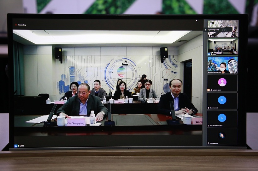 ดร.วรานี เวสสุนทรเทพ รองอธิการบดีฝ่ายวิทยาเขตสุพรรณบุรี เข้าร่วมประชุมเพื่อเตรียมความพร้อมในการดำเนินงานกับมหาวิทยาลัยกวางสี สาธารณรัฐประชาชนจีน ร่วมกับผู้บริหารจากมหาวิทยาลัยกวางสี พร้อมด้วยคณบดีคณะวิทยาการจัดการ คณบดีคณะมนุษยศาสตร์และสังคมศาสตร์ พร้อมด้วยประธานหลักสูตรฯ และกรรมการบริหารหลักสูตรฯ โดยมี ดร.พรชณิตว์ แก้วเนตร รองอธิการบดีฝ่ายกิจการต่างประเทศและลูกค้าสัมพันธ์ เป็นประธานการประชุม ในวันที่ 11 พฤศจิกายน 2564 เวลา 14.00-16.00 น. ณ ห้องประชุมศาลาชื่นอารมณ์ มหาวิทยาลัยสวนดุสิต