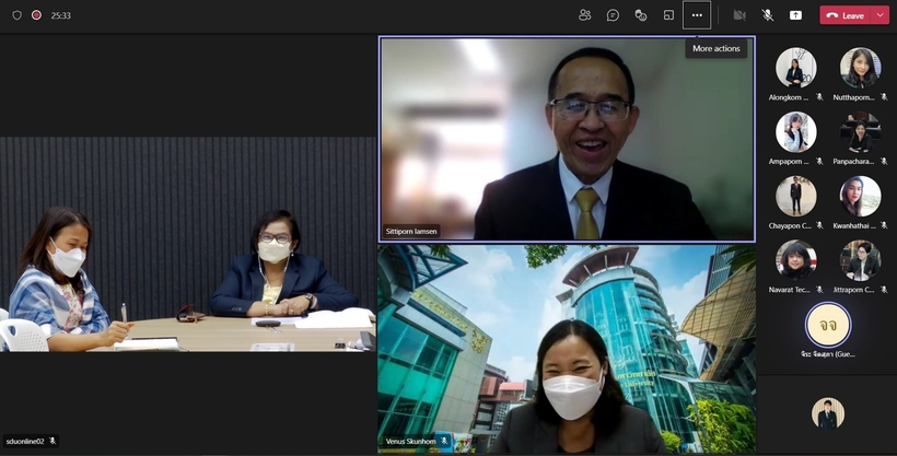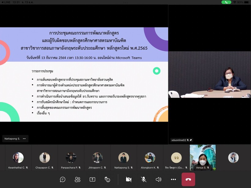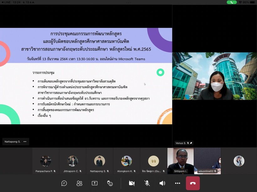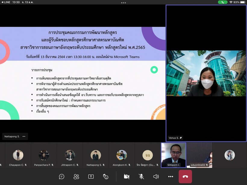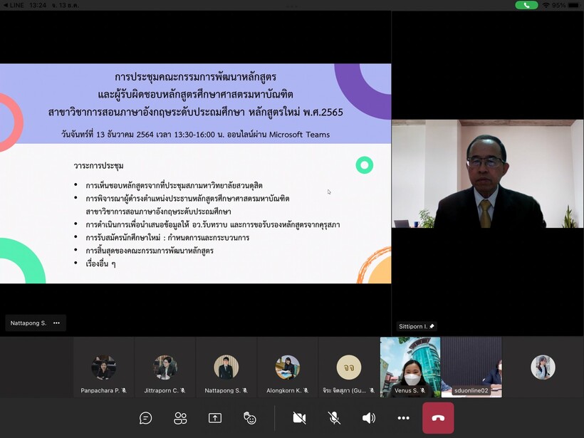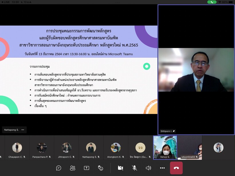 คณบดีคณะครุศาสตร์ มหาวิทยาลัยสวนดุสิต เป็นประธานการประชุมคณะกรรมการพัฒนาหลักสูตรและผู้รับผิดชอบหลักสูตรศึกษาศาสตรมหาบัณฑิต สาขาวิชาการสอนภาษาอังกฤษระดับประถมศึกษา หลักสูตรใหม่ พ.ศ. 2565 โดยมีผู้อำนวยการโรงเรียนสาธิตละอออุทิศ คณบดีบัณฑิตวิทยาลัย รองคณบดีคณะมนุษยศาสตร์และสังคมศาสตร์ รองผู้อำนวยการสำนักส่งเสริมวิชาการและงานทะเบียน และอาจารย์ผู้รับผิดชอบหลักสูตร เข้าร่วมประชุมเพื่อพิจารณาคัดเลือกประธานหลักสูตร กระบวนการในการเสนอขอการรับรองหลักสูตรจากคุรุสภา รวมถึงกำหนดการและกระบวนการรับสมัครนักศึกษาในปีการศึกษา 2565 เมื่อวันจันทร์ที่ 13 ธันวาคม 2564 เวลา 13:30-16:00 น. ในรูปแบบออนไลน์ผ่าน Program Microsoft Teams