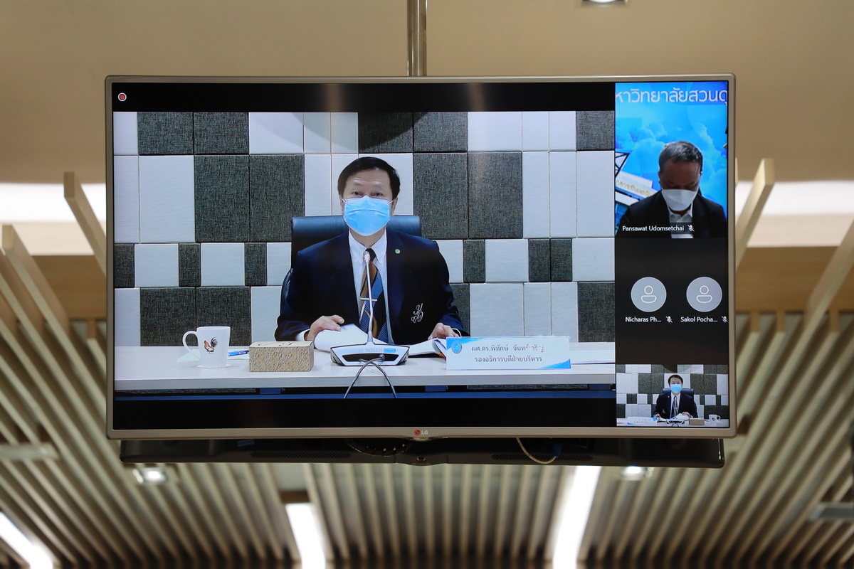 ผศ.ดร.พิทักษ์ จันทร์เจริญ รองอธิการบดีฝ่ายบริหาร มหาวิทยาลัยสวนดุสิต เป็นประธานในการประชุมคณะกรรมการบริหารศูนย์วิทยาศาสตร์ ครั้งที่ 3/2564 โดยมีวาระเรื่องการปรับปรุงระบบอินเทอร์เน็ตไร้สาย การติดตั้งเครื่องสแกนบัตรบุคลากร รายงานสรุปการใช้งานห้อง Online Learning Room และห้อง Virtual Instruction Room การปรับปรุงห้องเรียนออนไลน์ การจัดการระบบป้องกันน้ำท่วม ศูนย์วิทยาศาสตร์ การเตรียมความพร้อมในการเปิดภาคการศึกษาที่ 2/2564 การจัดการขยะภายในศูนย์วิทยาศาสตร์ตามนโยบายอธิการบดี รายงานการปรับปรุงอาคารเฉลิมพระเกียรติ 50 พรรษา มหาวชิราลงกรณ และการปรับปรุงอาคารที่พักศูนย์วิทยาศาสตร์ ณ ห้องประชุม ชั้น 5 อาคารสำนักงานมหาวิทยาลัย มหาวิทยาลัยสวนดุสิต วันที่ 23 ธันวาคม 2564