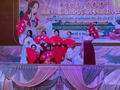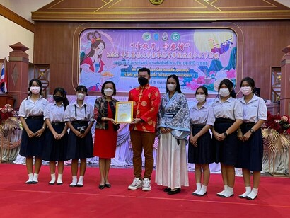 วันที่ 9 กันยายน 2565 เวลา 9.00-12.00 น. สถาบันขงจื่อมหาวิทยาลัยสวนดุสิต สุพรรณบุรีจัดกิจกรรมเทศกาลไหว้พระจันทร์ ณ ห้องเรียนขงจื่อ โรงเรียนบรรหาร- แจ่มใสวิทยา 1 จังหวัดสุพรรณบุรี ซึ่งได้รับเกียรติจาก ดร.วรานี เวสสุนทรเทพ รองอธิการบดีฝ่ายวิทยาเขตสุพรรณบุรีและกรรมการอำนวยการสถาบันขงจื่อมหาวิทยาลัยสวนดุสิตฯ เป็นประธานพิธีเปิด โดยได้รับการต้อนรับจาก ผู้ช่วยผู้อำนวยการฝ่ายบริหารวิชาการ นางภัญวดี แก้วทิพย์ พร้อมด้วยคณะผู้บริหารและครูโรงเรียนบรรหาร-แจ่มใสวิทยา 1 ให้การต้อนรับ ร่วมกับผู้อำนวยการสถาบันขงจื่อฯ ฝ่ายไทย-ฝ่ายจีนและคณะบุคลากรของสถาบันขงจื่อฯ ร่วมต้อนรับ กิจกรรมเทศกาลไหว้พระจันทร์ ปี 2565 นี้ได้รับความร่วมมืออย่างดีจากโรงเรียนในจังหวัดสุพรรณบุรีซึ่งเป็นโรงเรียนในเครือข่ายความร่วมมือของสถาบันขงจื่อมหาวิทยาลัยสวนดุสิตฯ ในจังหวัด สุพรรณบุรี ร่วมส่งชุดการแสดงอาทิ โรงเรียนบรรหาร-แจ่มใสวิทยา 3 โรงเรียนกรรณสูตศึกษาลัย โรงเรียนธรรมโชติศึกษาลัย โรงเรียนสระกระโจมโสภณพิทยา โรงเรียนสงวนหญิง โรงเรียนบางปลาม้าสูงสุมารผดุงวิทย์ รวมทั้งหลักสูตรภาษาจีนเพื่องานบริการ คณะมนุษย์ศาสตร์และสังคมศาสตร์ มหาวิทยาลัยสวนดุสิต ร่วมส่งชุดการแสดงและจัดนิทรรศการสาธิตการชงชาและตัดกระดาษจีนด้วย