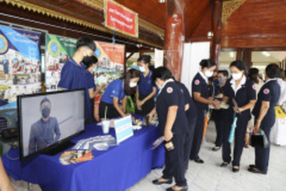 มหาวิทยาลัยสวนดุสิต วิทยาเขตสุพรรณบุรี เข้าร่วมโครงการปฏิบัติราชการเพื่อให้บริการประชาชน (จังหวัดเคลื่อนที่) ร่วมกับปกครองจังหวัดสุพรรณบุรี โดยคณะกรรมการโครงการบริการวิชาการแก่สังคม นำโดย ดร.นวลศรี สงสม อาจารย์ประจำสาขาวิชาประถมศึกษา และนักศึกษาหลักสูตรศึกษาศาสตร์บัณฑิต สาขาวิชาการประถมศึกษา สาธิตการทำผ้าเช็ดหน้าจากผ้าบาติก ให้แก่ชาวบ้านและผู้ที่สนใจในงาน ทั้งนี้นายณัฐภัทร สุวรรณประทีป ผู้ว่าราชการจังหวัดสุพรรณบุรี ได้เข้าเยี่ยมชมบูธประชาสัมพันธ์การรับสมัครนักศึกษาใหม่ ประจำปีการศึกษา 2566 และกิจกรรมภายในบูธ ในวันพฤหัสบดีที่ที่ 29 กันยายน 2565 เวลา 08.00-12.00 น. ณ วัดทุ่งแฝก หมู่ที่ 11 ตำบลวังลึก อำเภอสามชุก จังหวัดสุพรรณบุรี