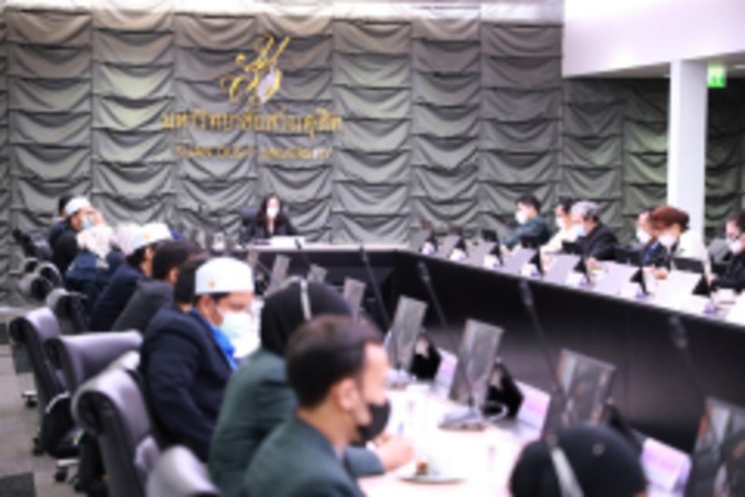 กิจกรรม Insight M-Sci ระหว่าง คณะวิทยาการจัดการ มหาวิทยาลัยสวนดุสิต กับ สมาคมโรงเรียนเอกชนสอนศาสนาอิสลามแห่งประเทศไทย โรงเรียนสอนศาสนาศานูปถัมภ์ และโรงเรียนอิสลามสนติชน โดยมี ผู้ช่วยศาสตราจารย์ ดร. ปรียนันท์ ประยูรศักดิ์ คณบดีคณะวิทยาการจัดการ กล่าวต้อนรับคณะผู้เข้าร่วมงานและแนะนำหลักสูตรฯ Credit Bank และทุนการศึกษา นำโดย ดร.มนัส บุญชม นายกสมาคมโรงเรียนเอกชนสอนศาสนาอิสลามแห่งประเทศไทย คุณประเสริฐ อยู่เป็นสุข ผู้รับใบอนุญาตโรงเรียนสอนศาสนาศาสนูปถัมภ์ คุณประเสริฐ  มัสชารี ประธานกรรมการบริหารโรงเรียนอิสลามสันติชน และคณะ ในการนี้ประธานหลักสูตร แนะนำหลักสูตร เพื่อให้โรงเรียนได้รับทราบข้อมูลการเผยแพร่ประชาสัมพันธ์หลักสูตรต่างๆ ของคณะและกิจกรรมด้านส่งเสริมการศึกษาต่อในหลักสูตรของ คณะวิทยาการจัดการ พร้อมนำคณะผู้เข้าร่วมงานเยี่ยมชมสถานที่ต่างๆ ภายในมหาวิทยาลัยสวนดุสิต เมื่อวันศุกร์ที่ 7 ตุลาคม พ.ศ.2565 ณ ห้องประชุมศาลาชื่นอารมณ์ มหาวิทยาลัยสวนดุสิต